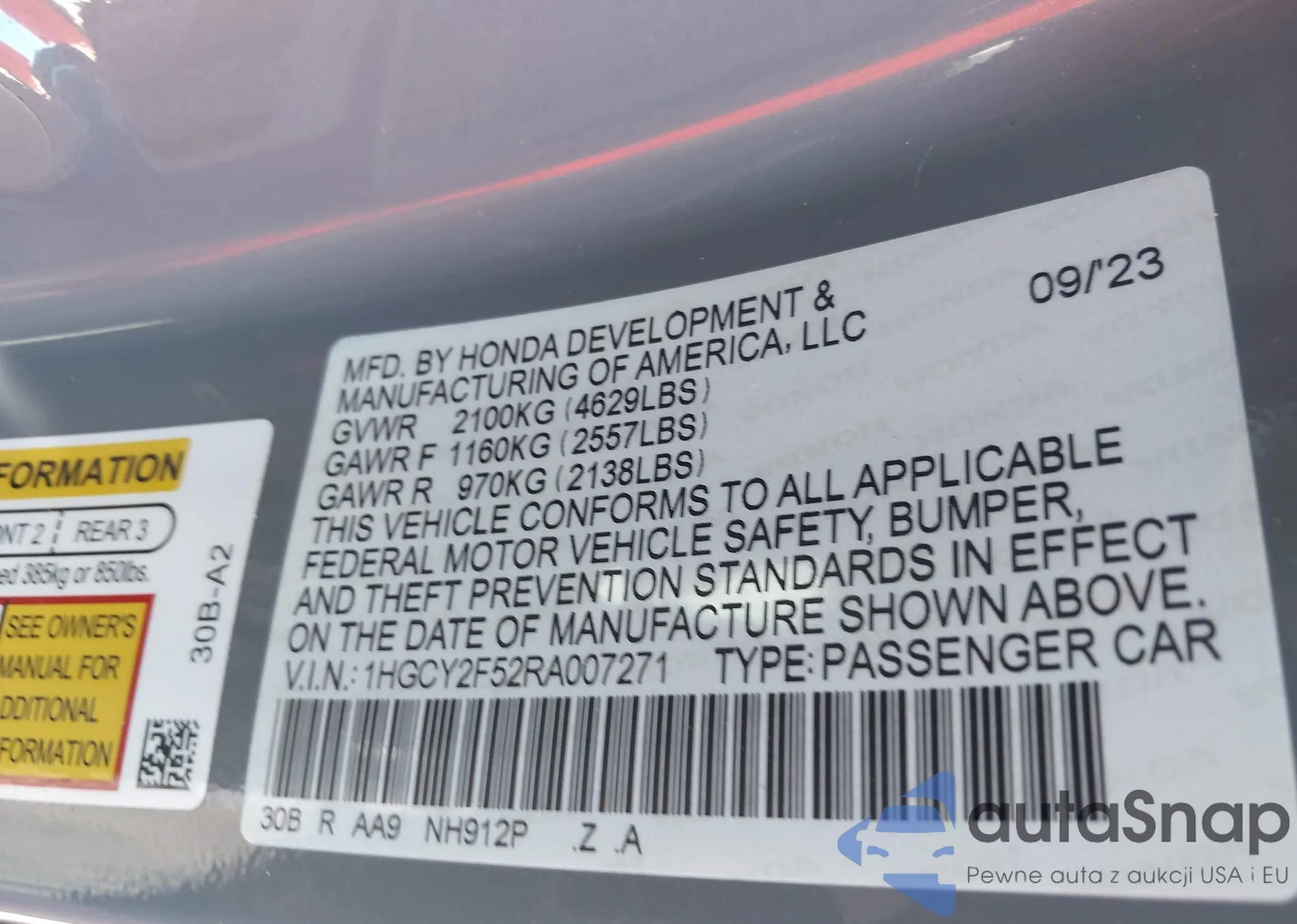 VIN: 1HGCY2F52RA007271