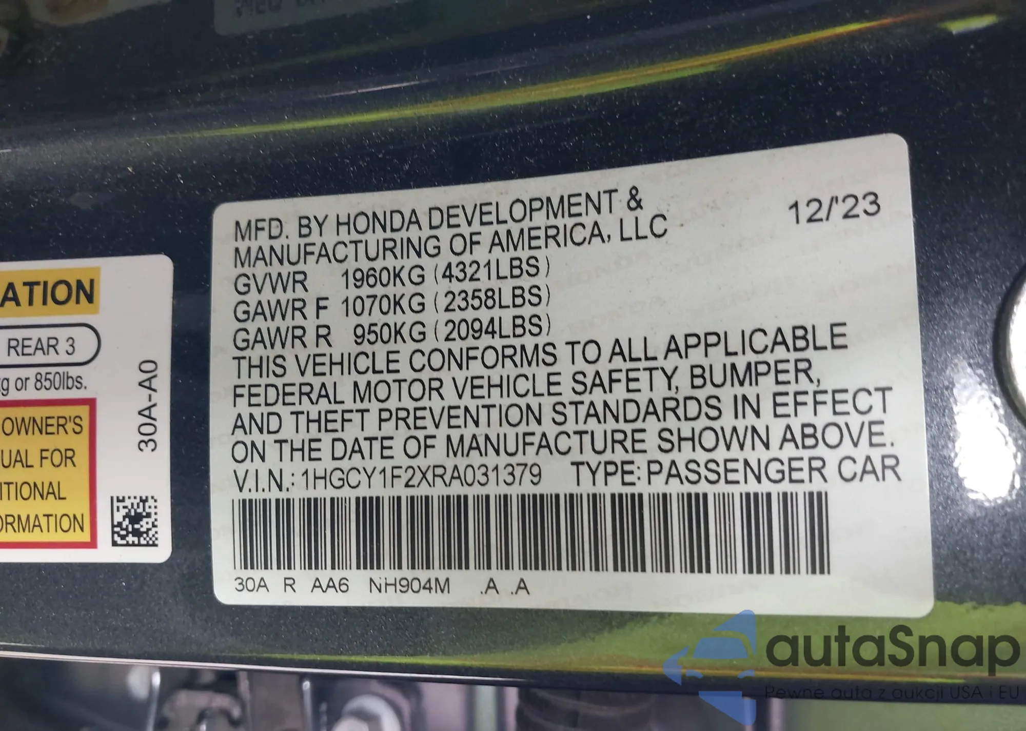 VIN: 1HGCY1F2XRA031379