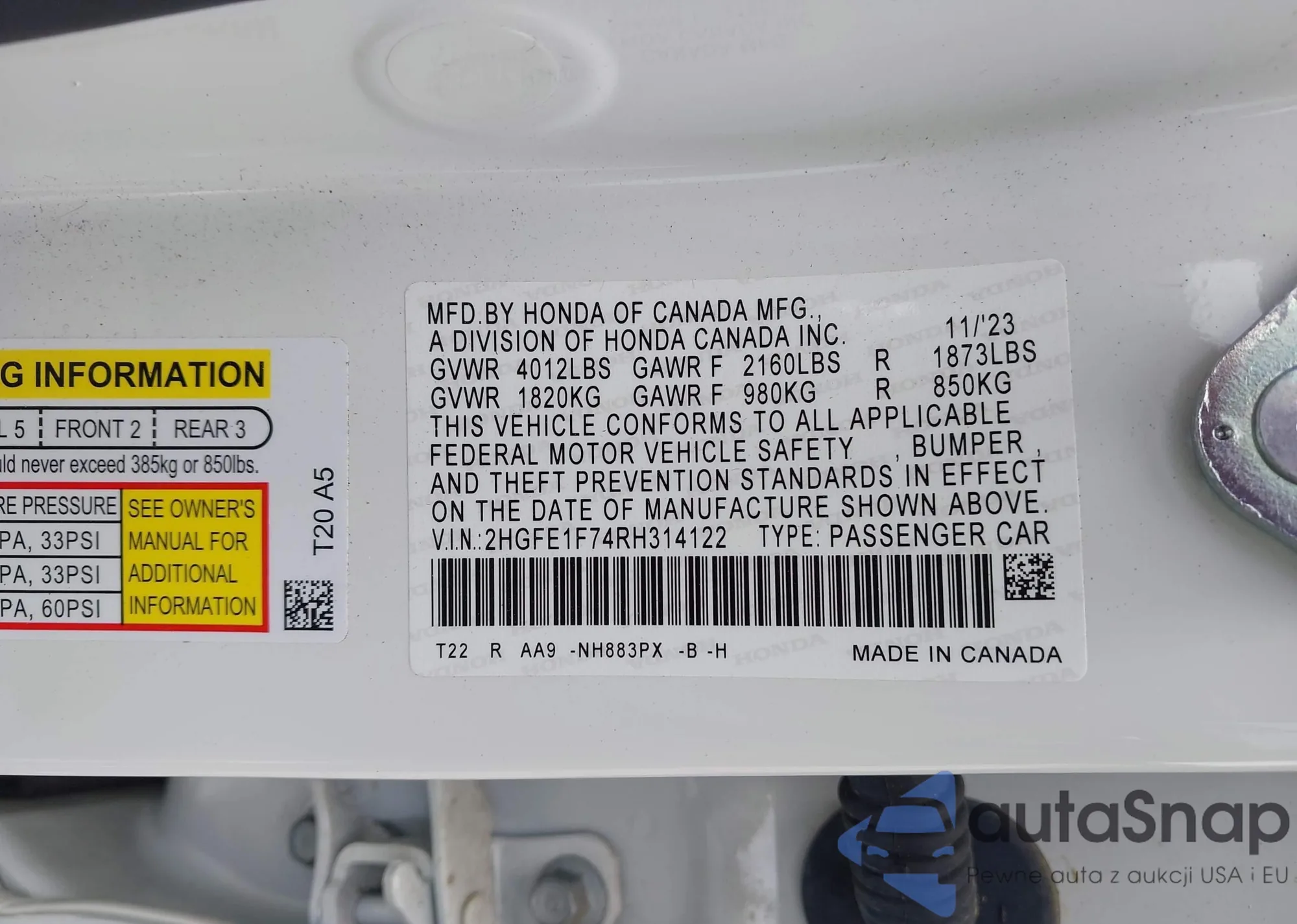 VIN: 2HGFE1F74RH314122