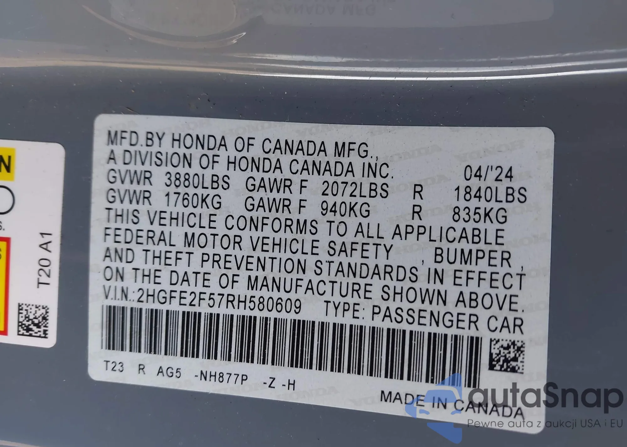 VIN: 2HGFE2F57RH580609