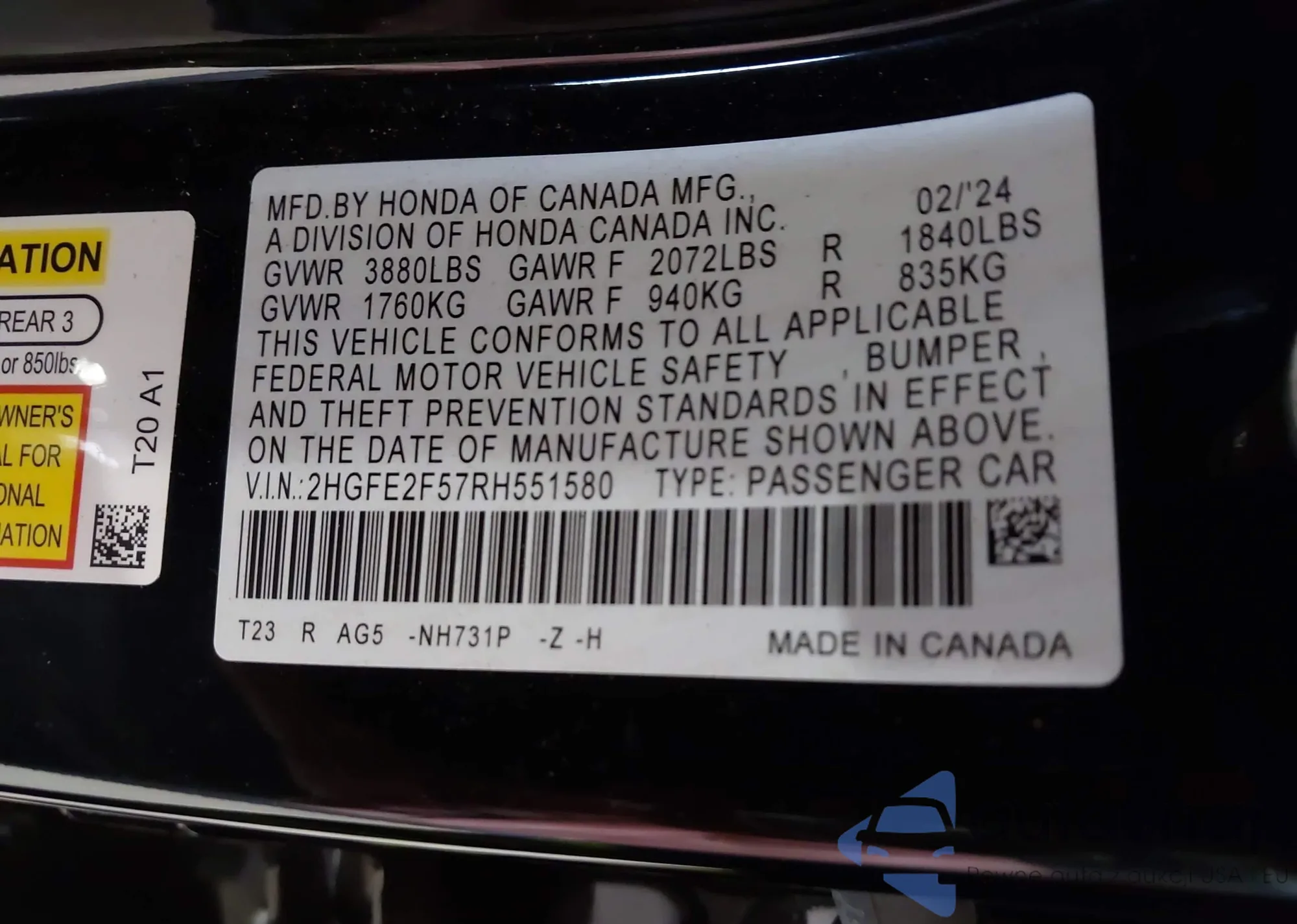 VIN: 2HGFE2F57RH551580