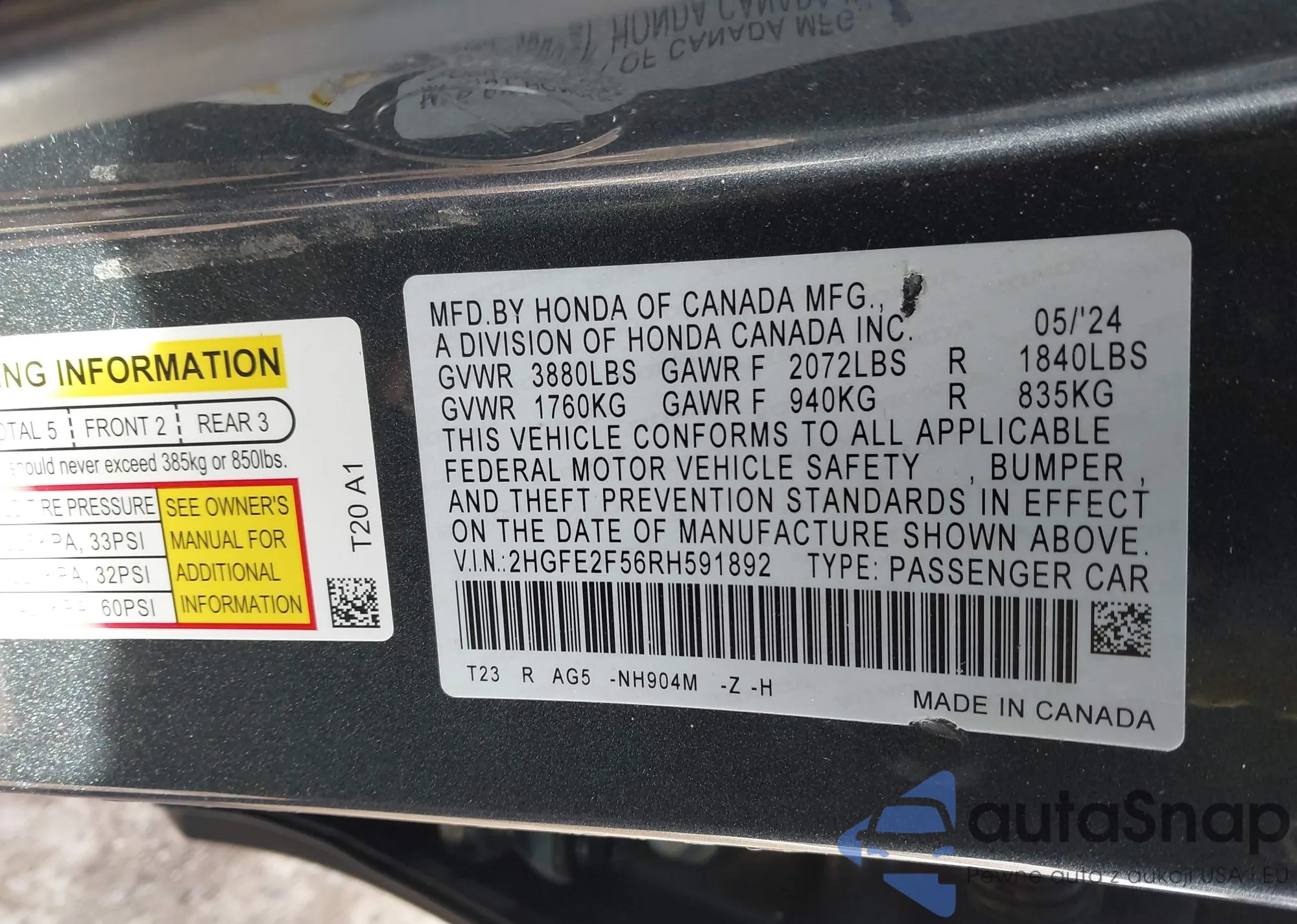 Samochód Honda Civic 2024 (VIN 2HGFE2F56RH591892) nie był wcześniej licytowany. Dokumenty są czyste, przebieg odpowiada lub jest niższy niż średnia rynku. Sprzedaje go firma ubezpieczeniowa – polecamy zakup. Dostawa do portu zajmie ok. 6–8 tygodni.