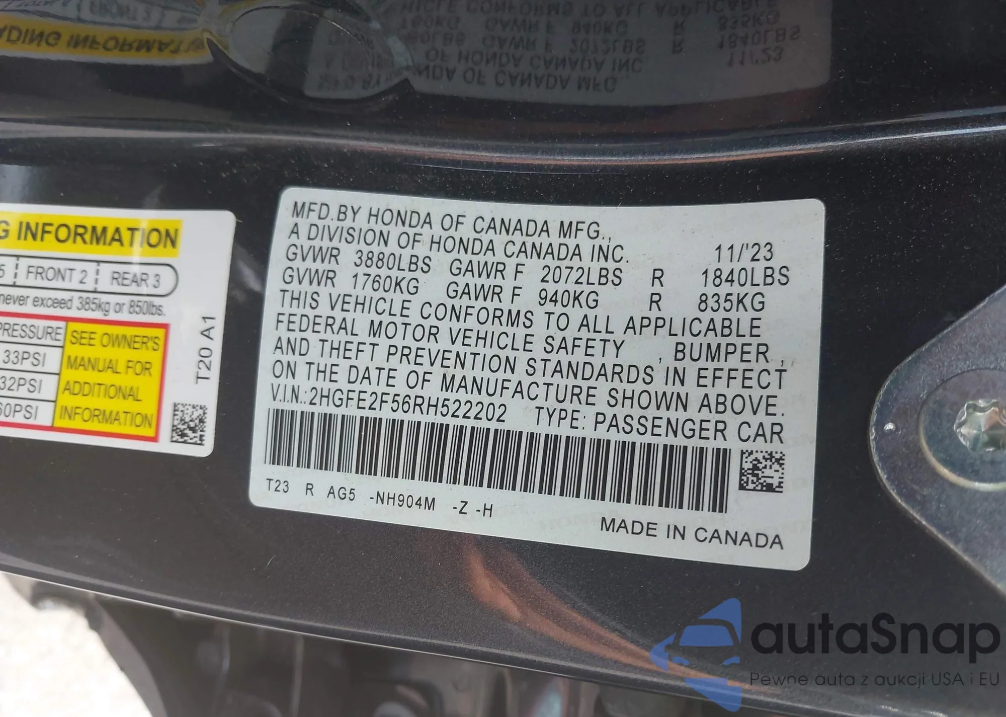 VIN: 2HGFE2F56RH522202