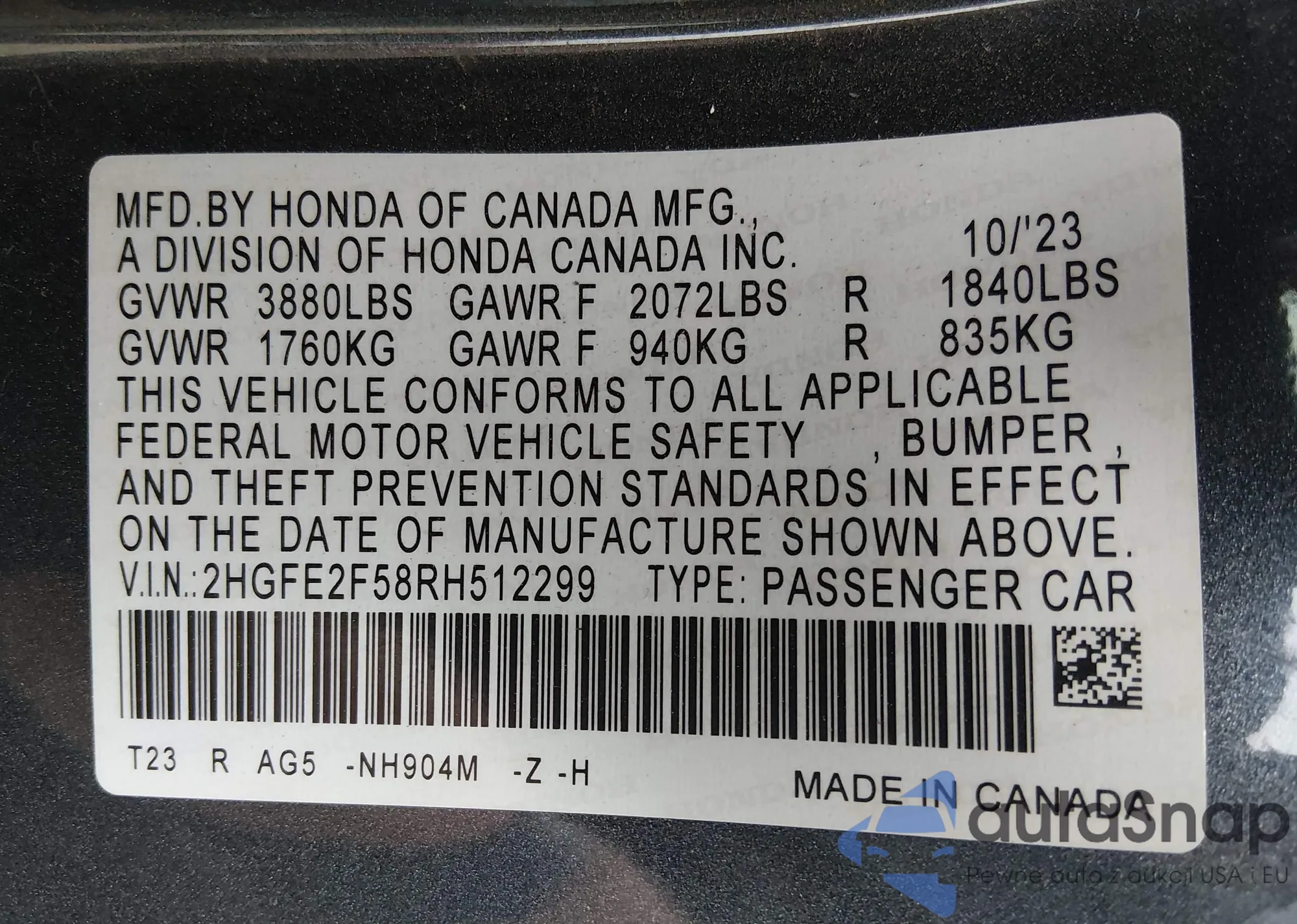 Samochód Honda Civic 2024 (VIN 2HGFE2F58RH512299) nie był wcześniej licytowany. Dokumenty są czyste, przebieg odpowiada lub jest niższy niż średnia rynku. Sprzedaje go firma ubezpieczeniowa – polecamy zakup. Dostawa do portu zajmie ok. 6–8 tygodni.