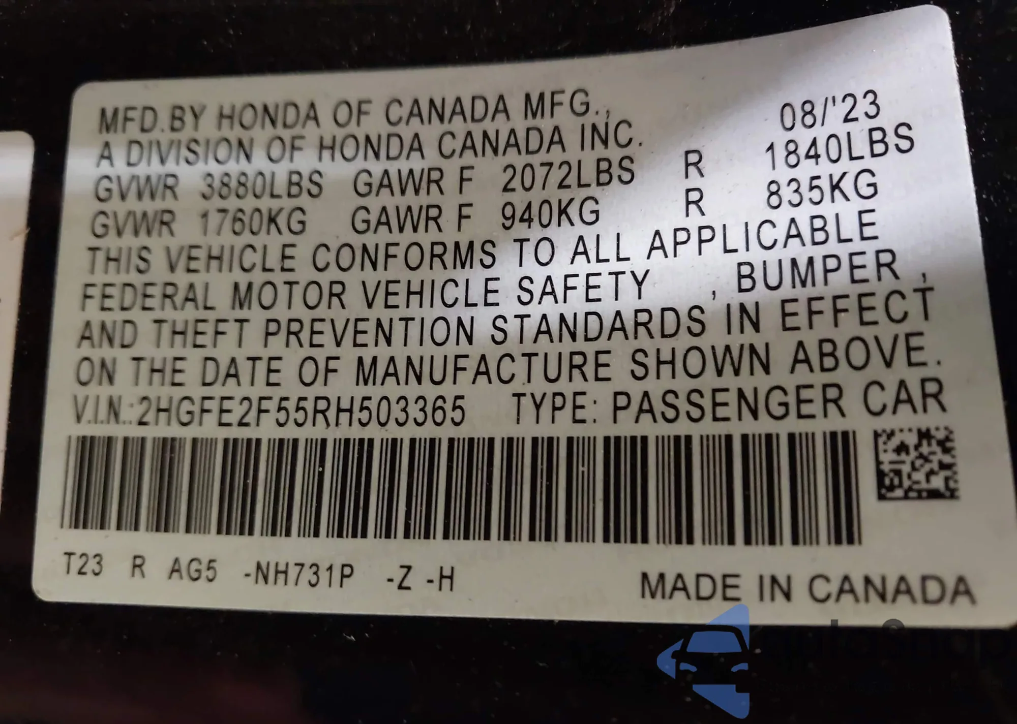 VIN: 2HGFE2F55RH503365