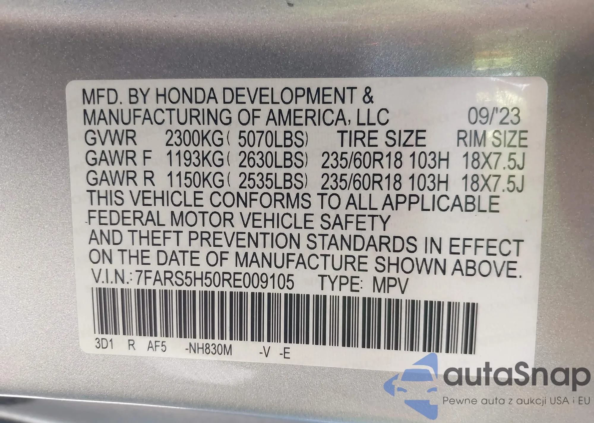 VIN: 7FARS5H50RE009105