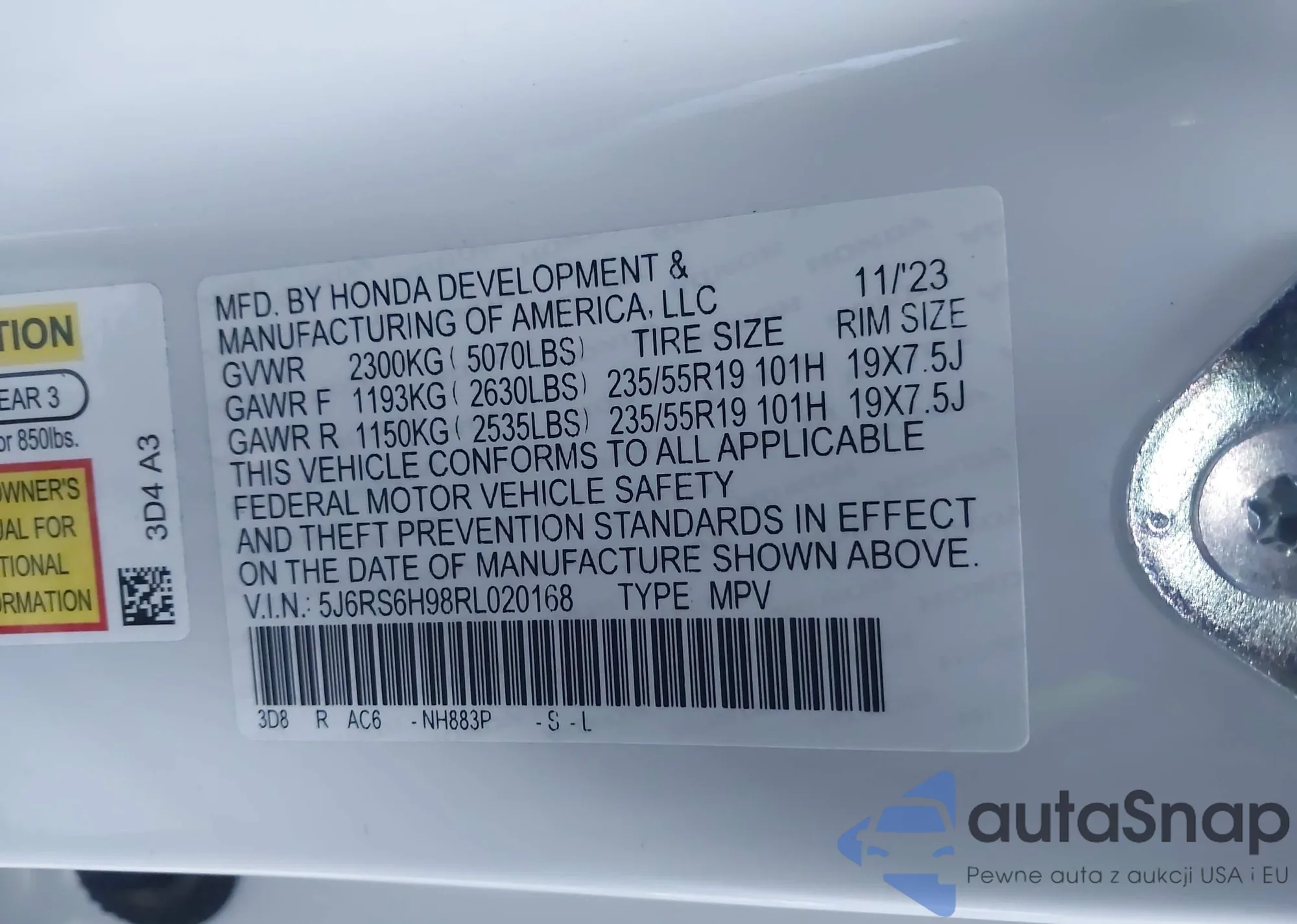 VIN: 5J6RS6H98RL020168