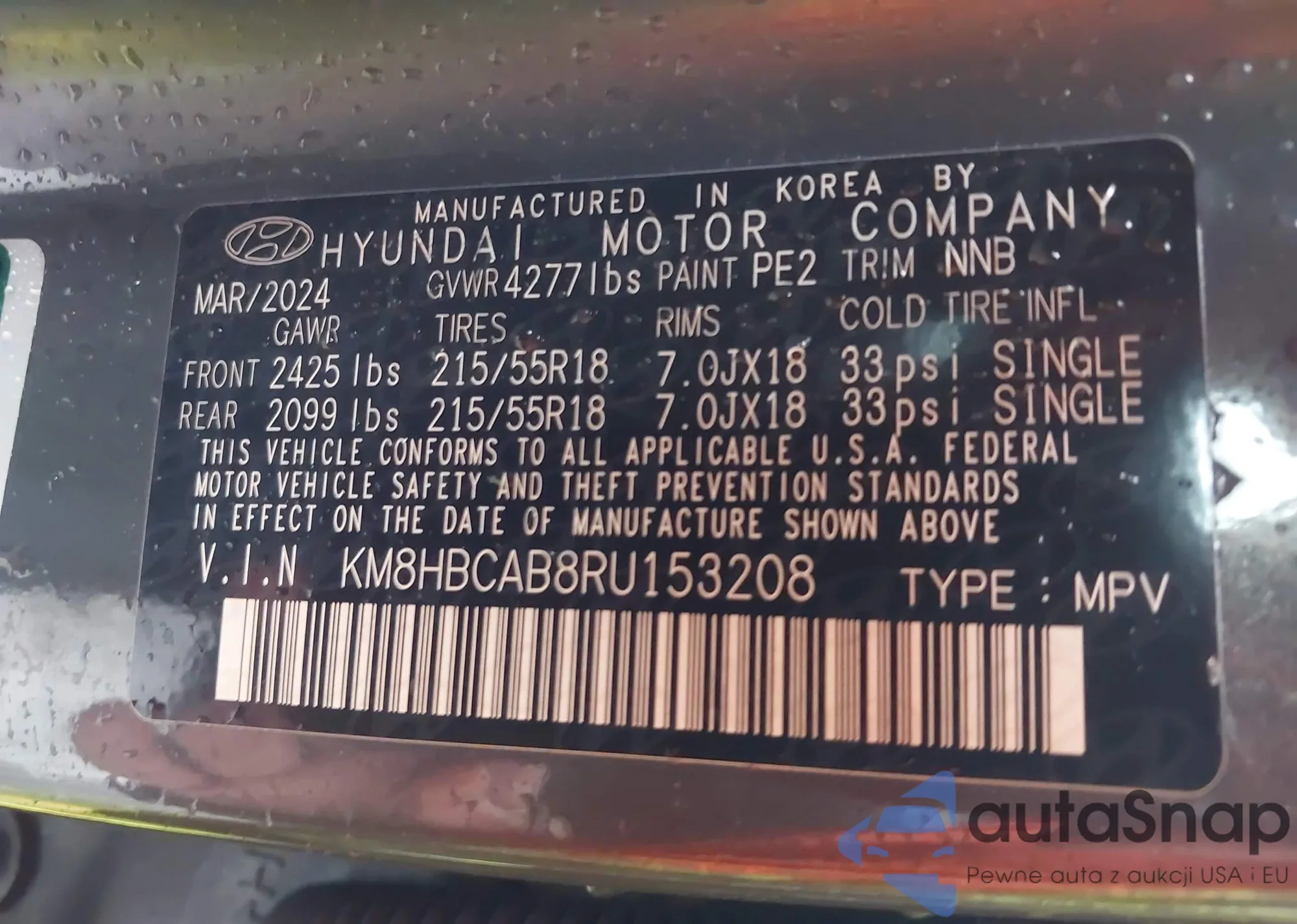 VIN: KM8HBCAB8RU153208