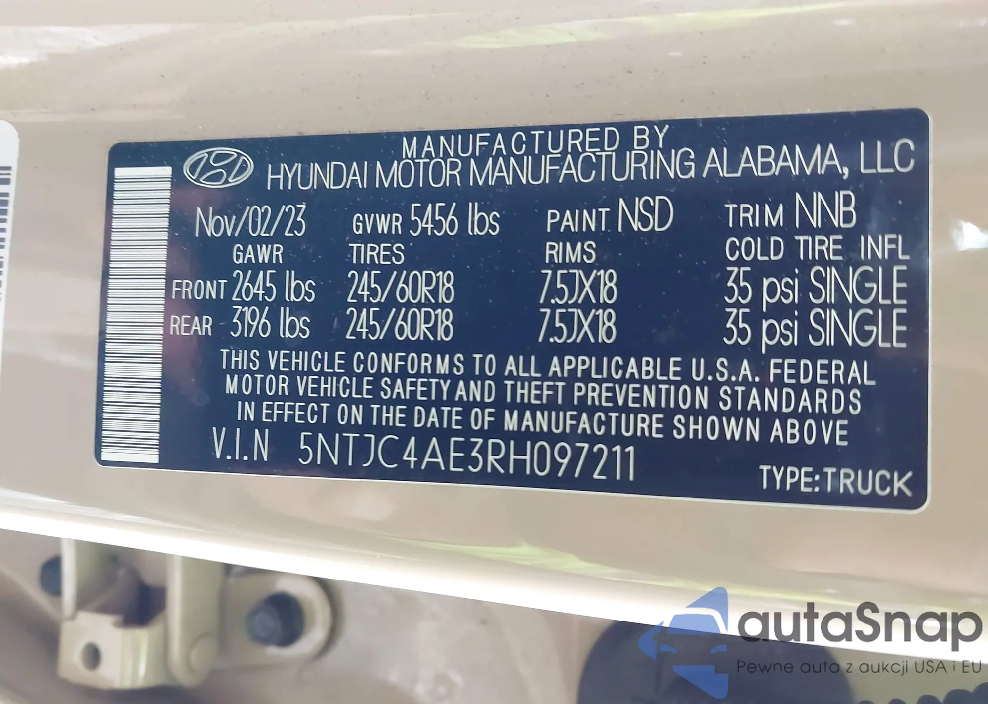 VIN: 5NTJC4AE3RH097211
