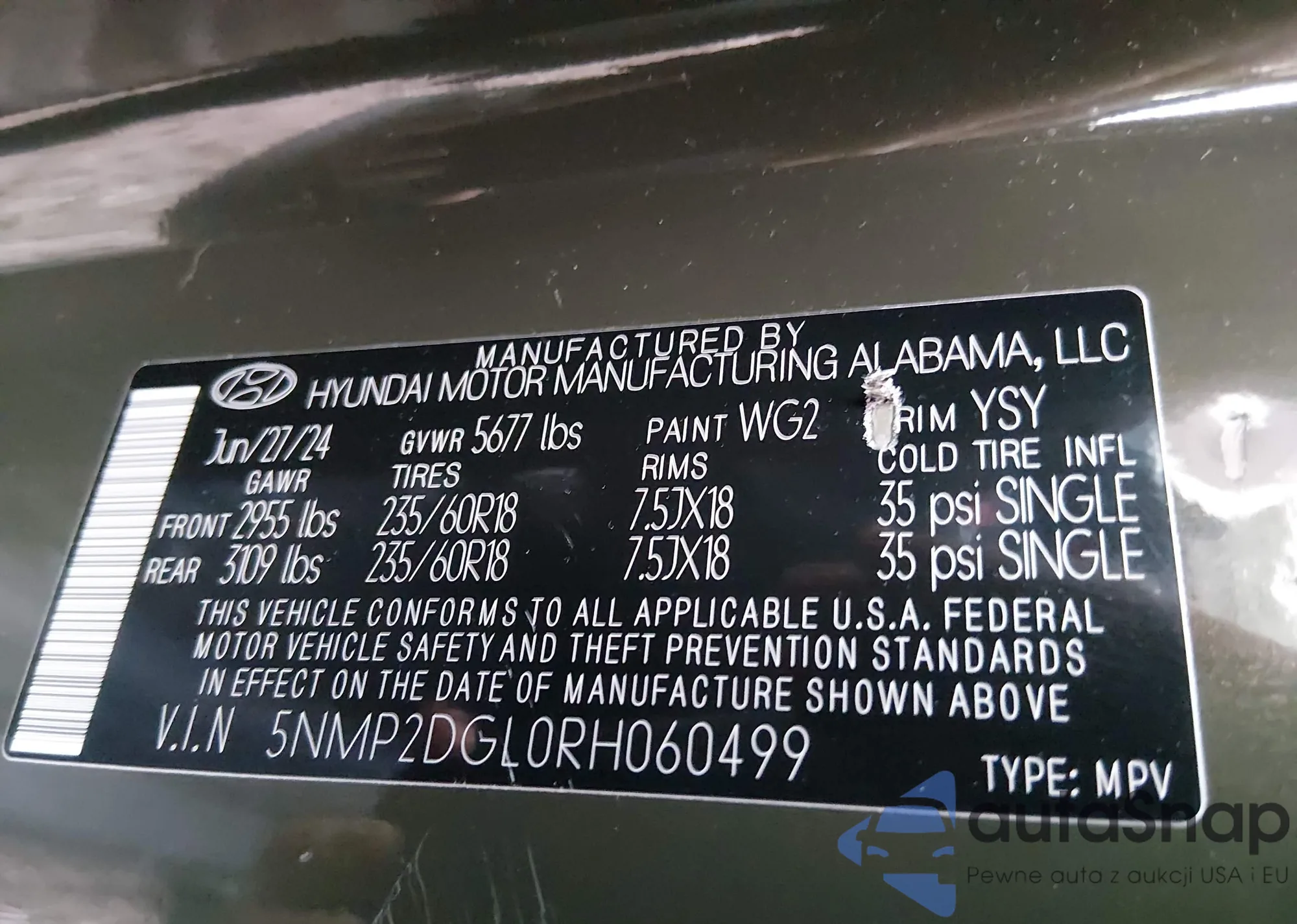 Samochód Hyundai Santa Fe 2024 (VIN 5NMP2DGL0RH060499) nie był wcześniej licytowany. Dokumenty są czyste, przebieg odpowiada lub jest niższy niż średnia rynku. Sprzedaje go firma ubezpieczeniowa – polecamy zakup. Dostawa do portu zajmie ok. 6–8 tygodni.
