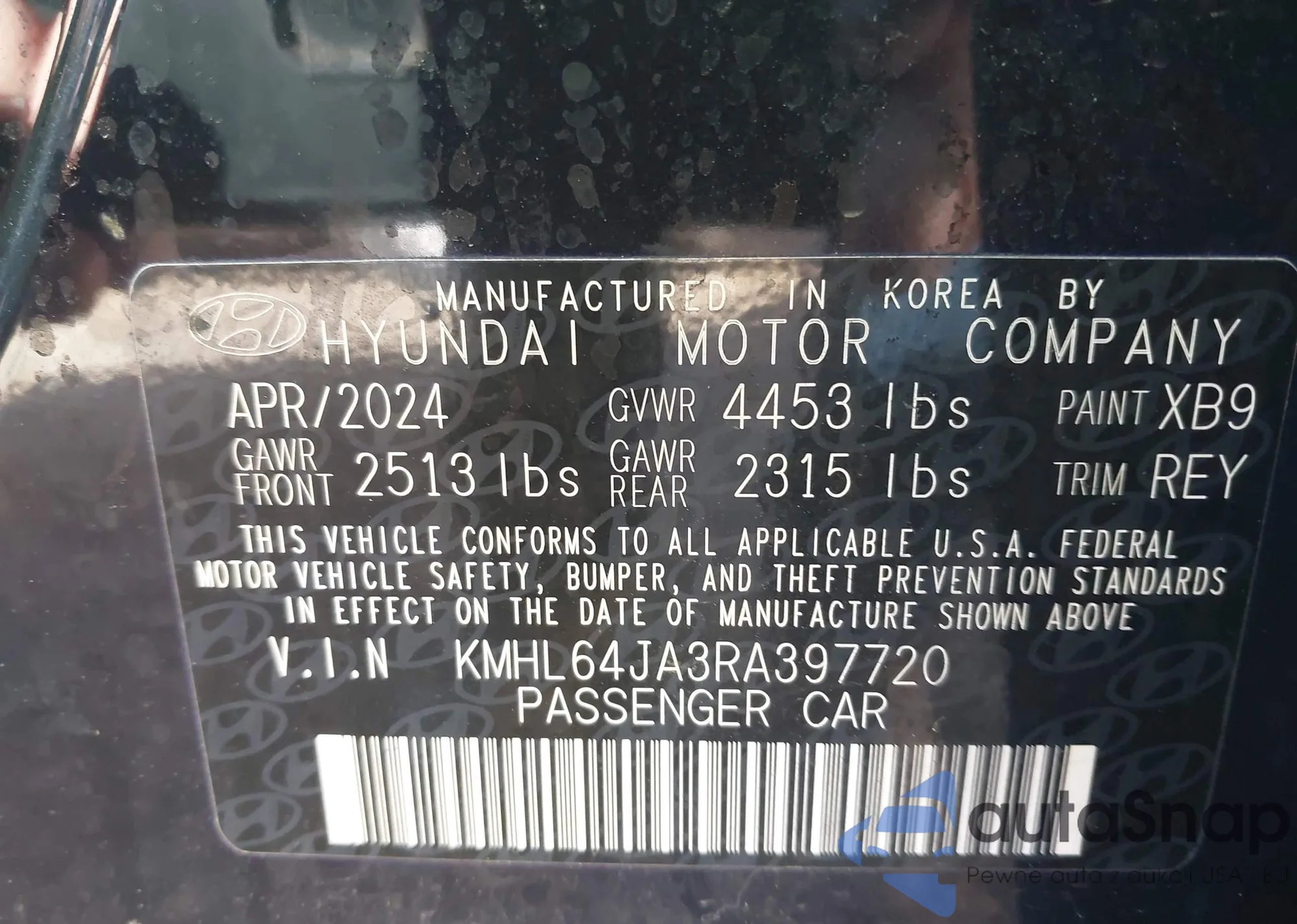 Hyundai Sonata 2024 – Historia pojazdu (sprzedany na IAAI)