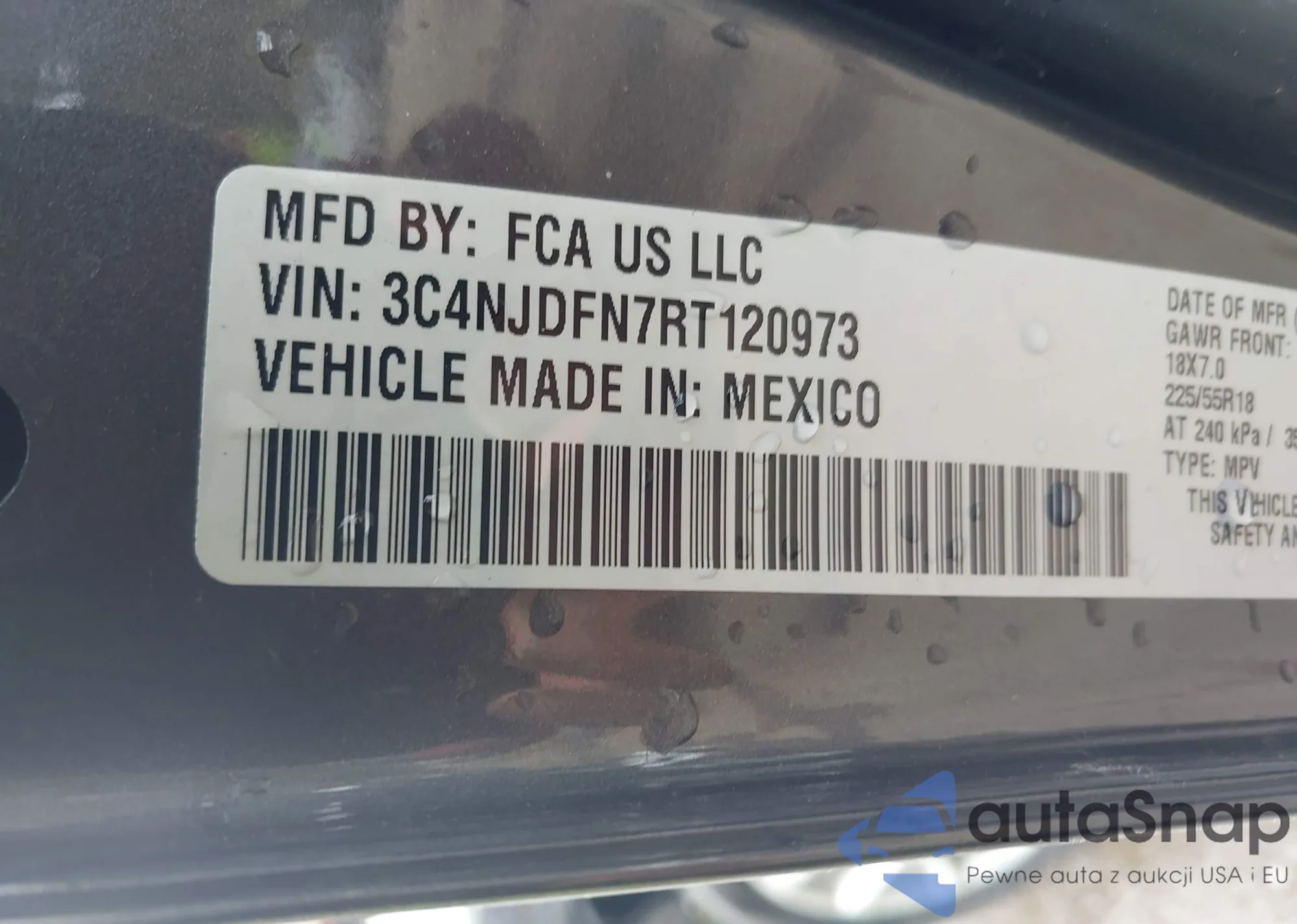 Samochód Jeep Compass 2024 (VIN 3C4NJDFN7RT120973) nie był wcześniej licytowany. Dokumenty są czyste, przebieg odpowiada lub jest niższy niż średnia rynku. Sprzedaje go firma ubezpieczeniowa – polecamy zakup. Dostawa do portu zajmie ok. 6–8 tygodni.