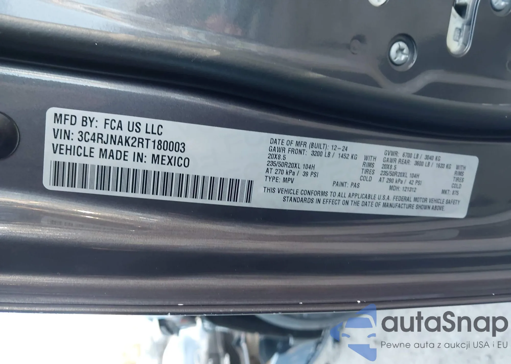 • VIN: 3C4RJNAK2RT180003