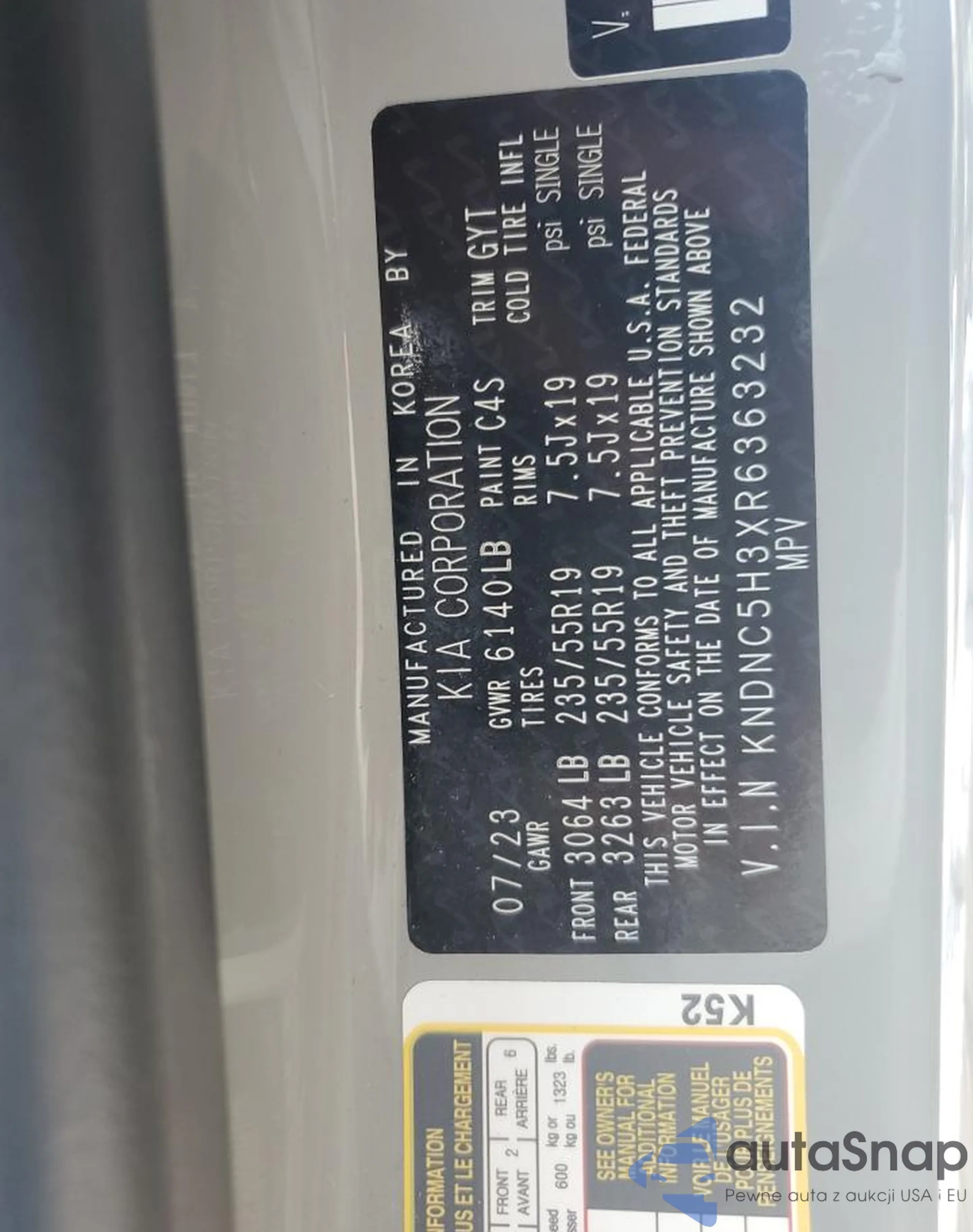 Samochód Kia Carnival 2024 (VIN KNDNC5H3XR6363232) nie był wcześniej licytowany. Dokumenty są czyste, przebieg odpowiada lub jest niższy niż średnia rynku. Sprzedaje go firma ubezpieczeniowa – polecamy zakup. Dostawa do portu zajmie ok. 6–8 tygodni.