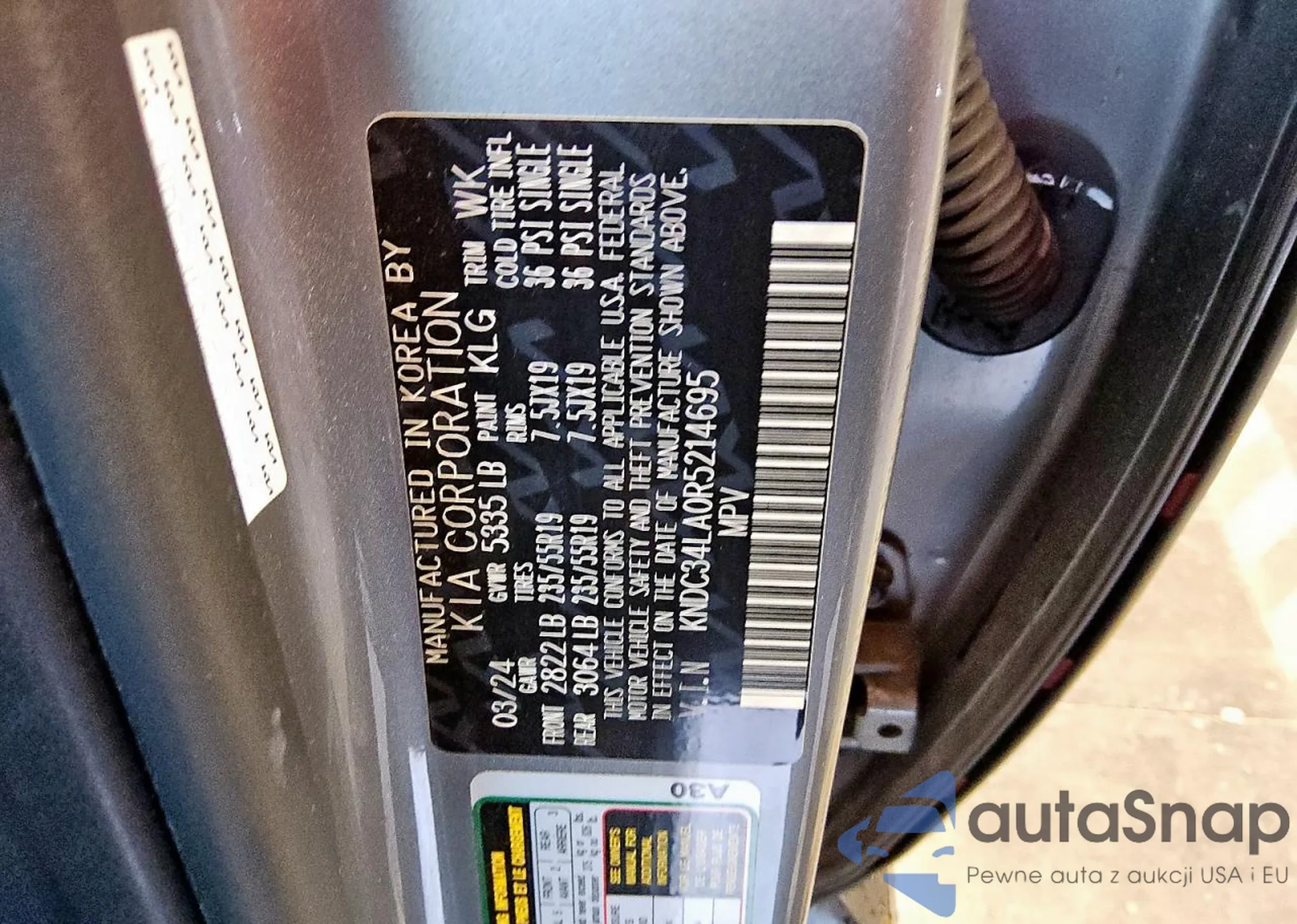 Samochód Kia EV6 2024 (VIN KNDC34LA0R5214695) ma dokumenty uniemożliwiające rejestrację. Mogą pojawić się trudności przy eksporcie i rejestracji. Skontaktuj się z ekspertami AutaSnap w celu znalezienia alternatywy.