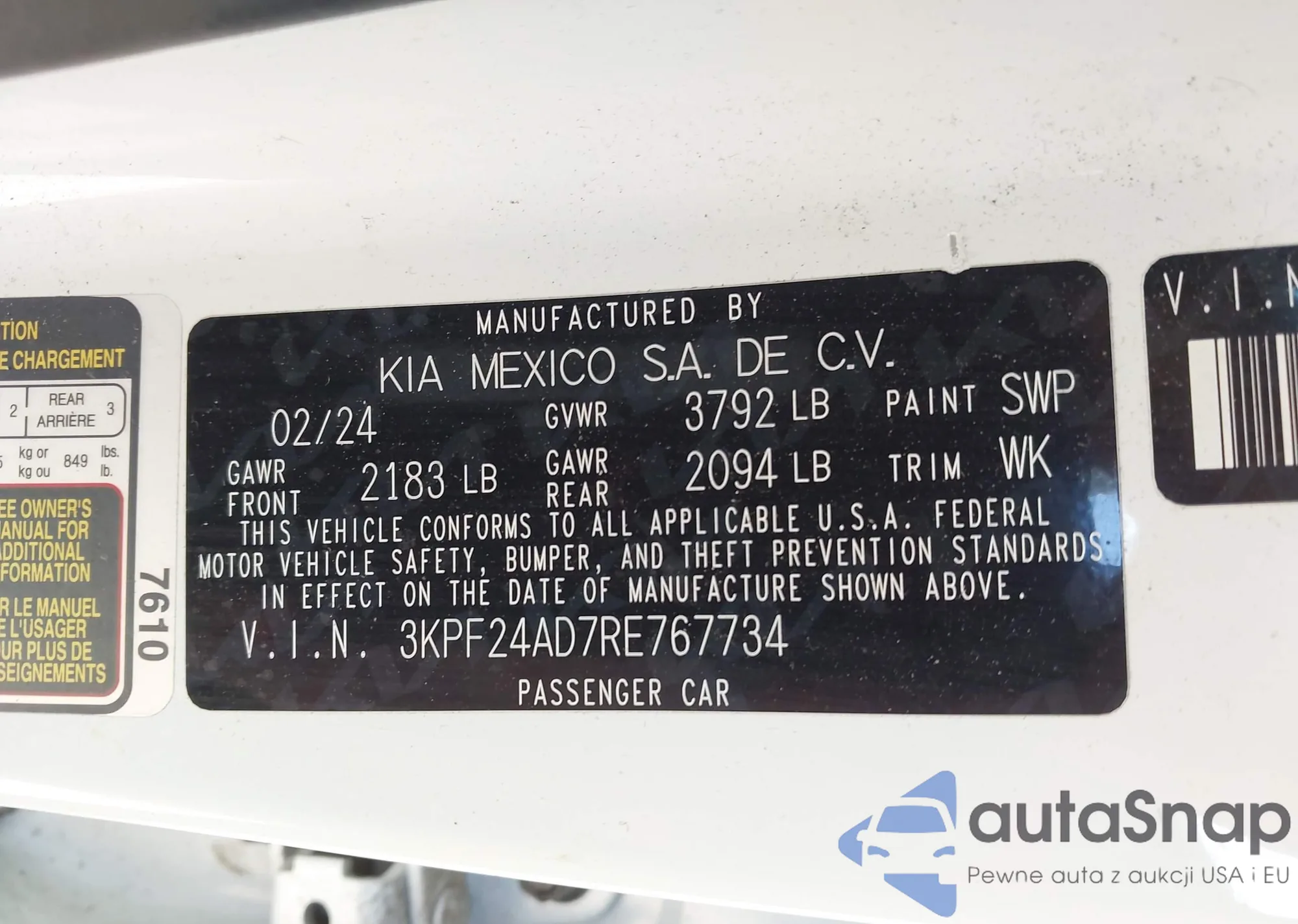 Samochód Kia Forte 2024 (VIN 3KPF24AD7RE767734) nie był wcześniej licytowany. Dokumenty są czyste, przebieg odpowiada lub jest niższy niż średnia rynku. Sprzedaje go firma ubezpieczeniowa – polecamy zakup. Dostawa do portu zajmie ok. 6–8 tygodni.