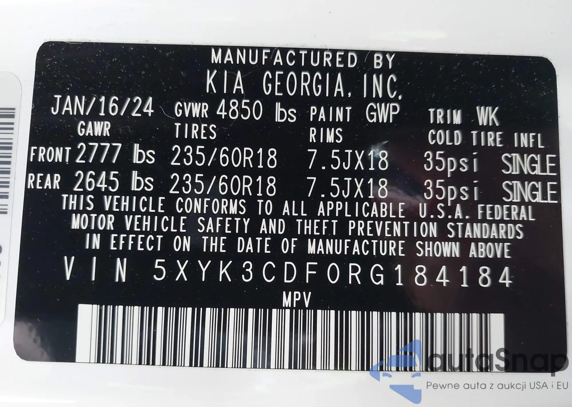 VIN: 5XYK3CDF0RG184184