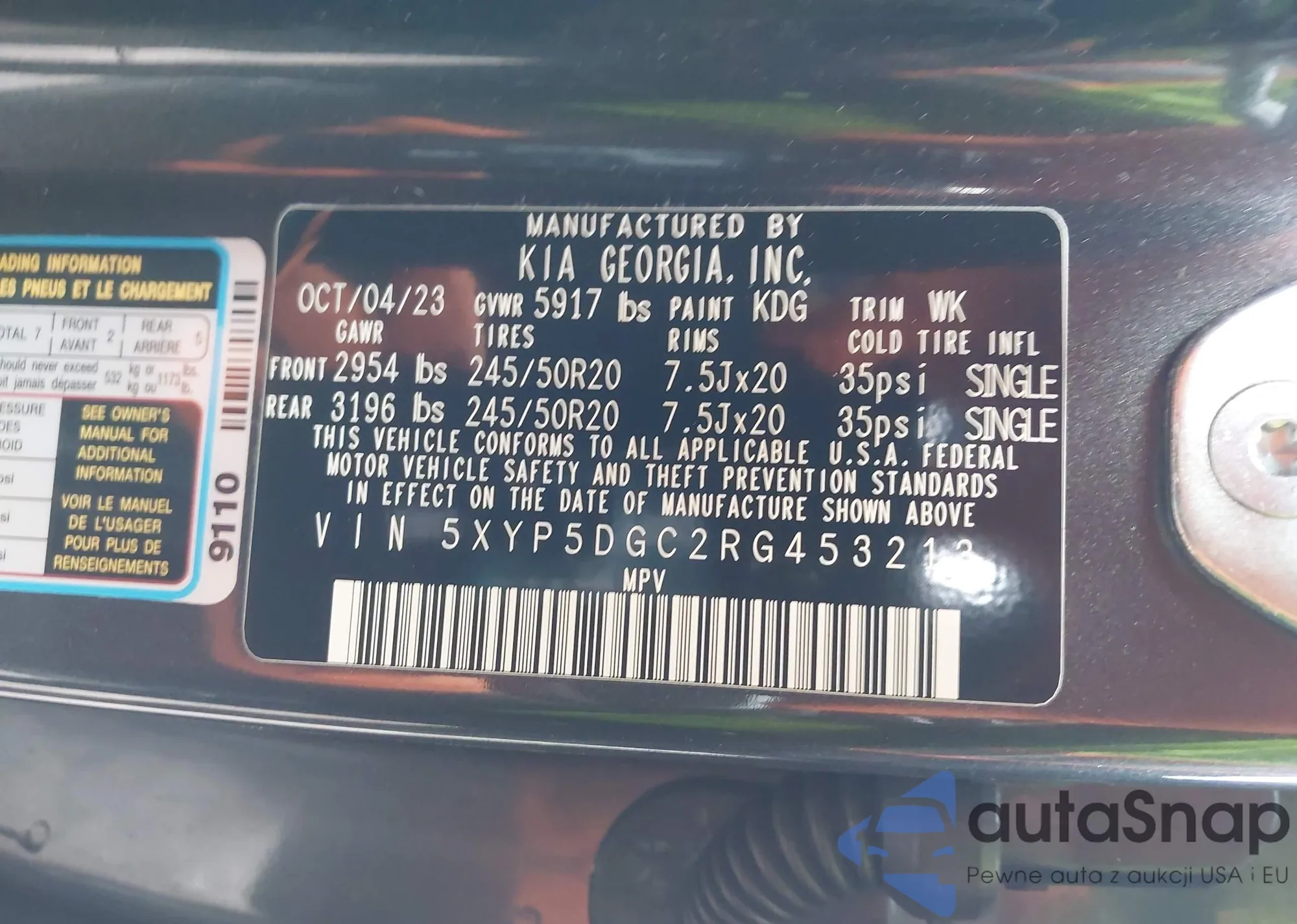 • VIN: 5XYP5DGC2RG453213