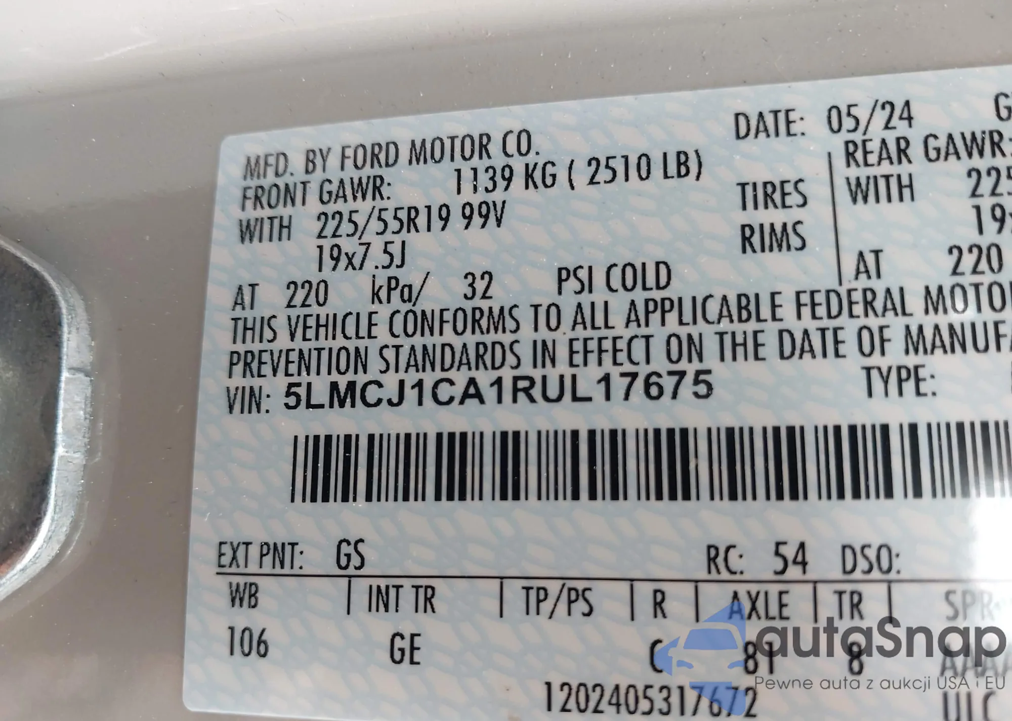 • VIN: 5LMCJ1CA1RUL17675