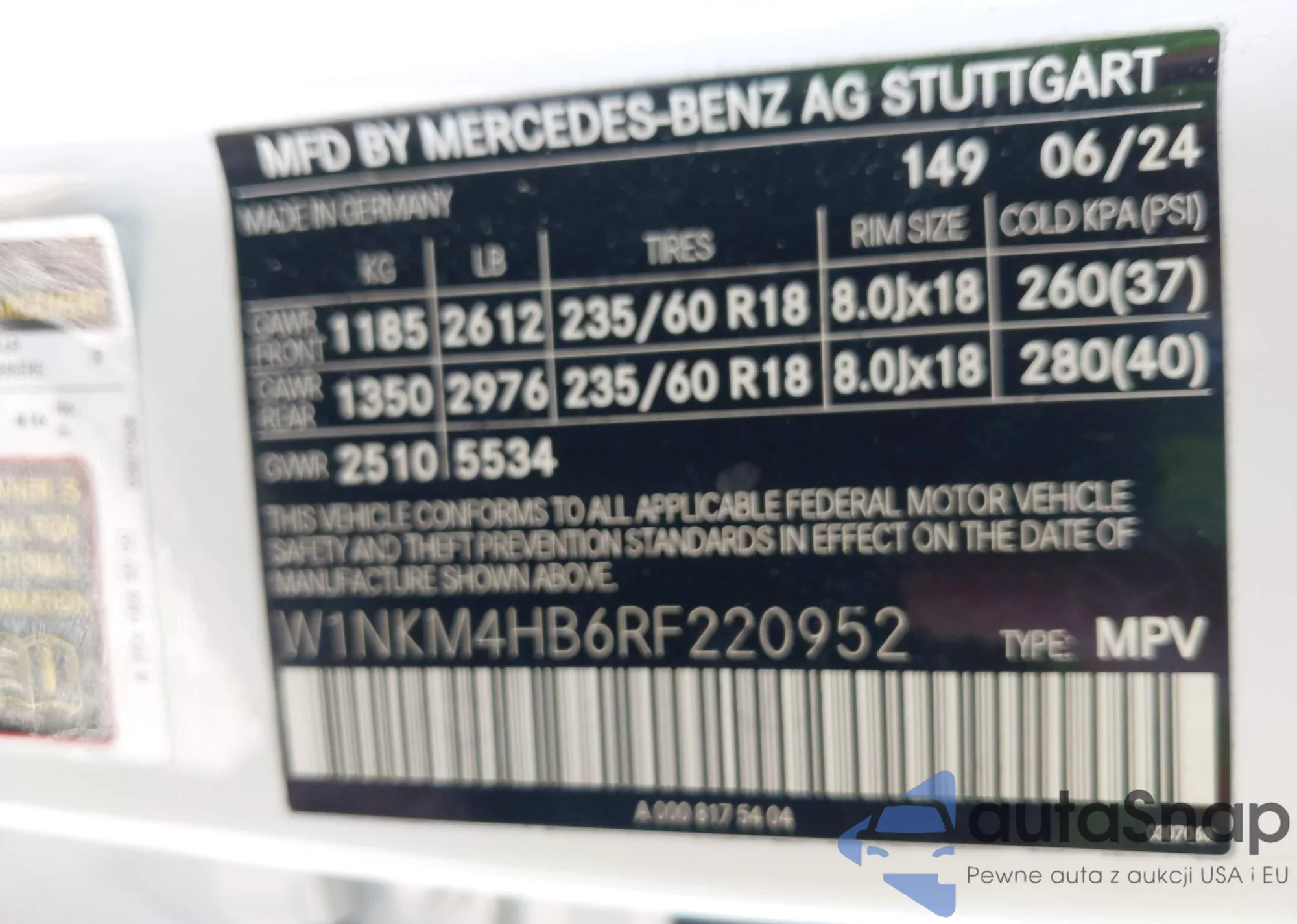 • VIN: W1NKM4HB6RF220952