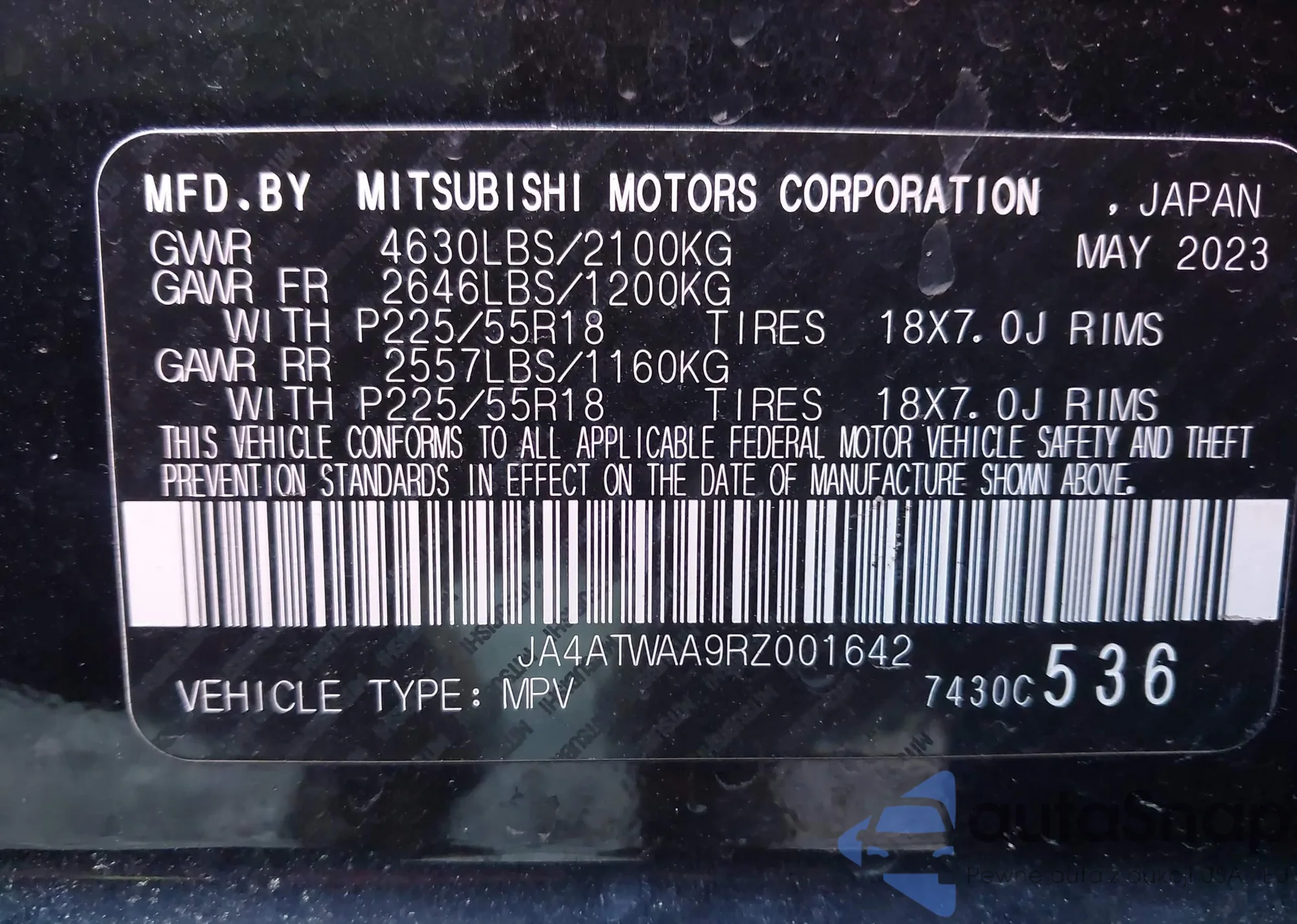 • VIN: JA4ATWAA9RZ001642