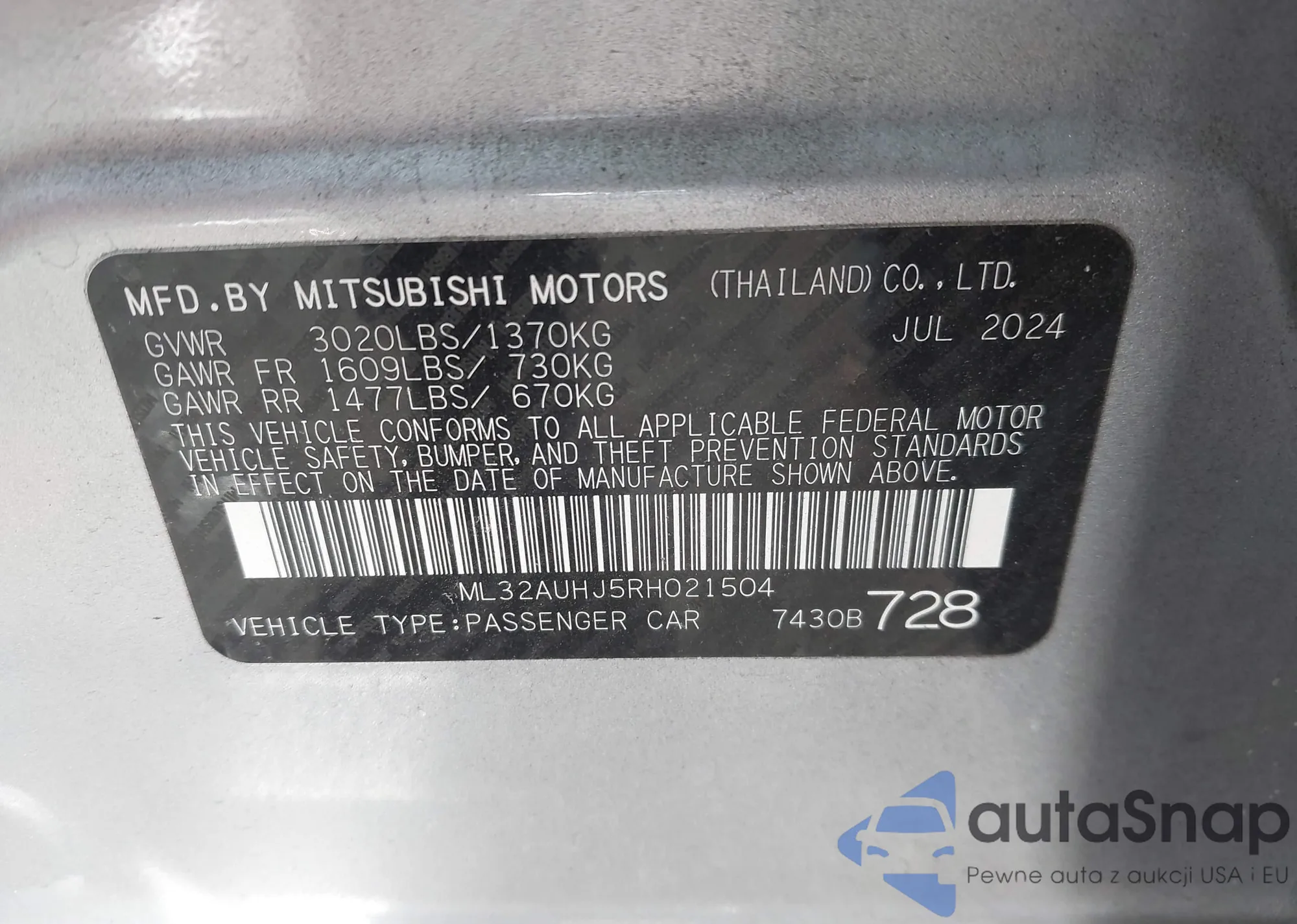 Samochód Mitsubishi Mirage 2024 (VIN ML32AUHJ5RH021504) sprzedaje go niezweryfikowany sprzedawca. Zalecamy raport Carfax i potwierdzenie możliwości rejestracji pojazdu przed zakupem.