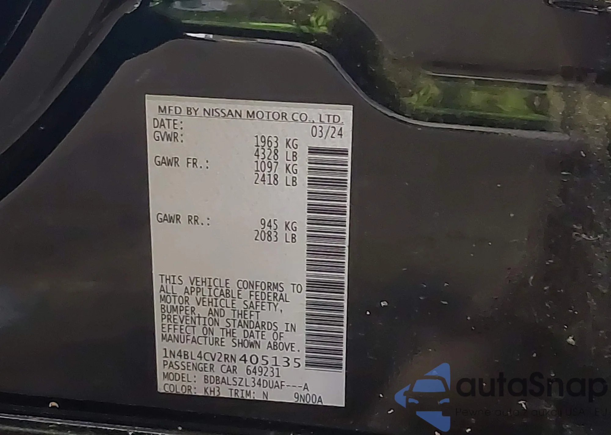 VIN: 1N4BL4CV2RN405135