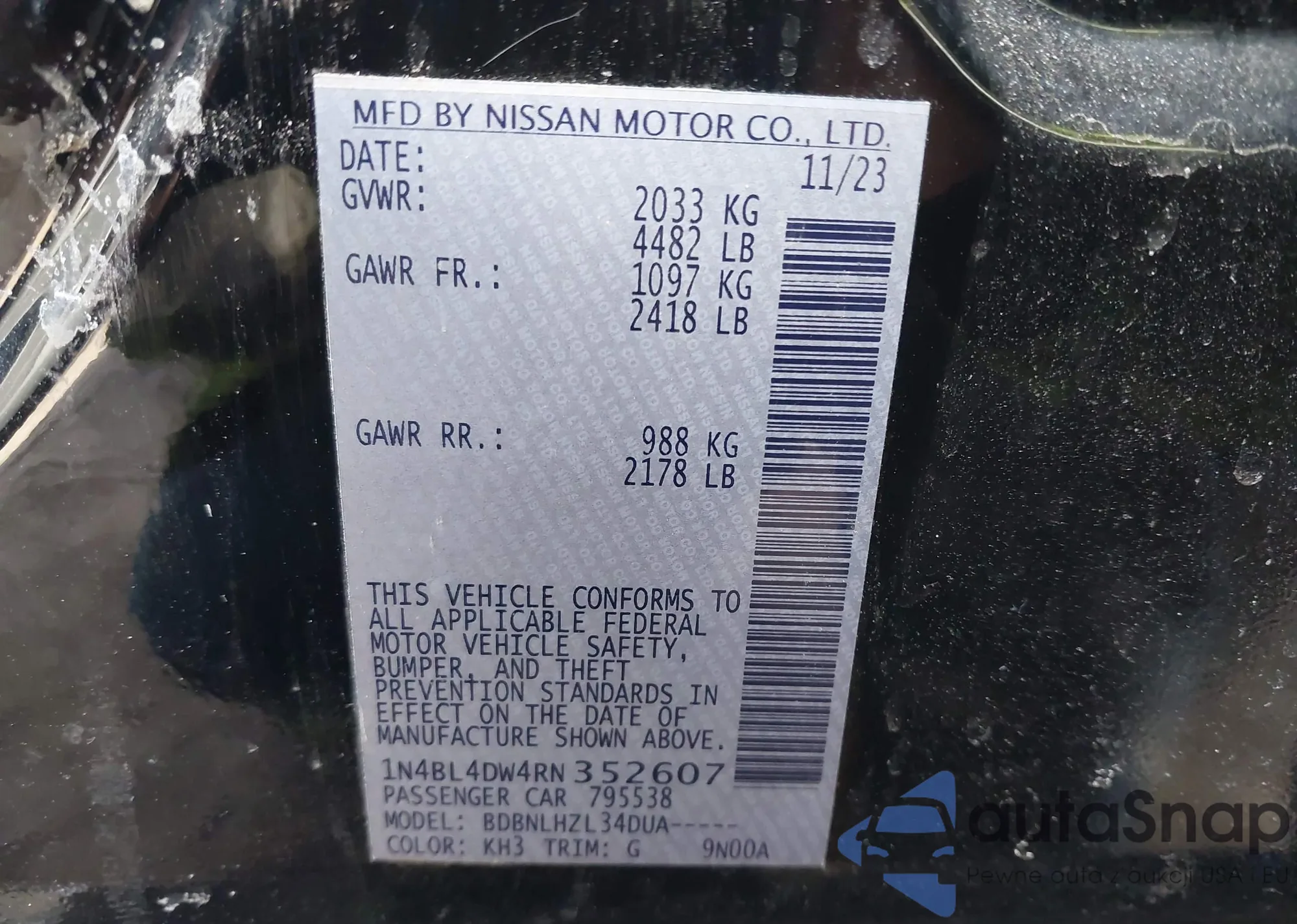 VIN: 1N4BL4DW4RN352607