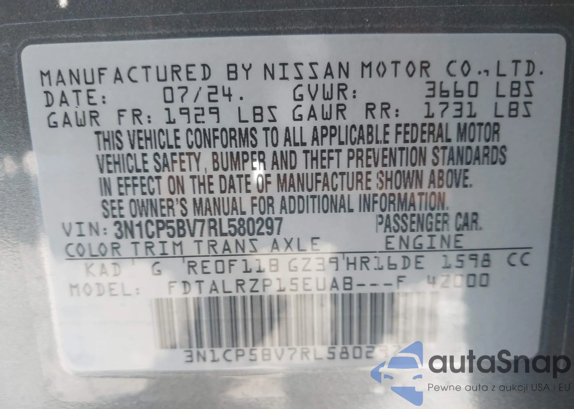 VIN: 3N1CP5BV7RL580297