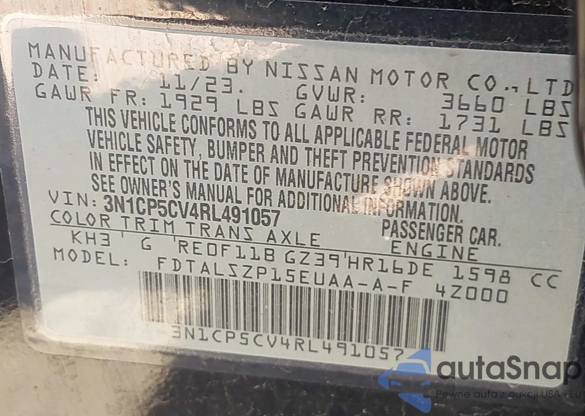 VIN: 3N1CP5CV4RL491057