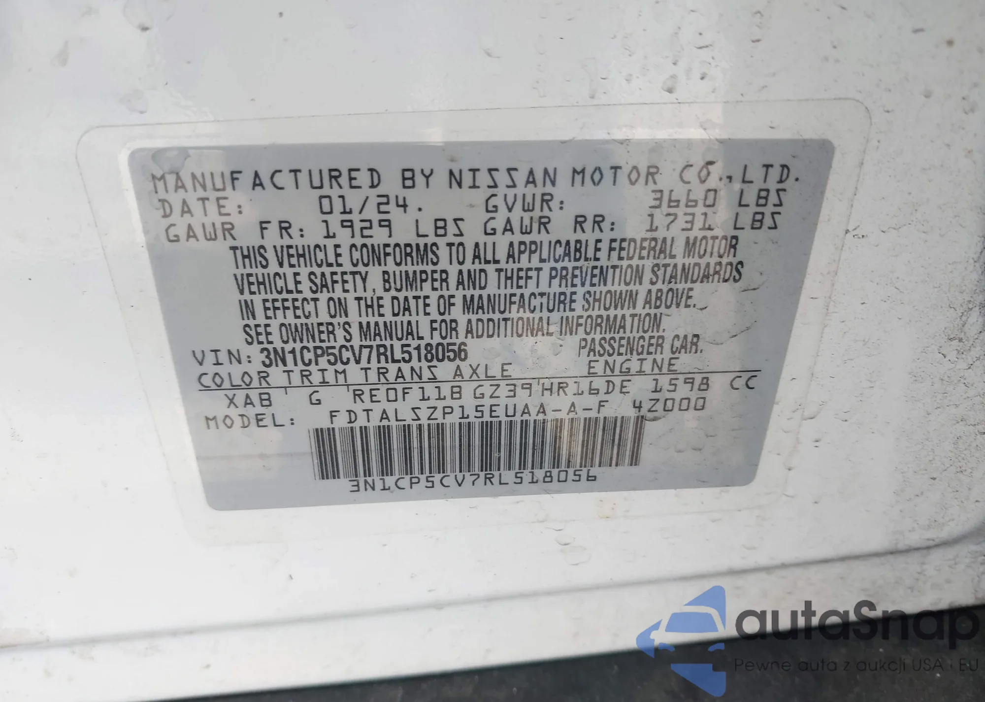 • VIN: 3N1CP5CV7RL518056