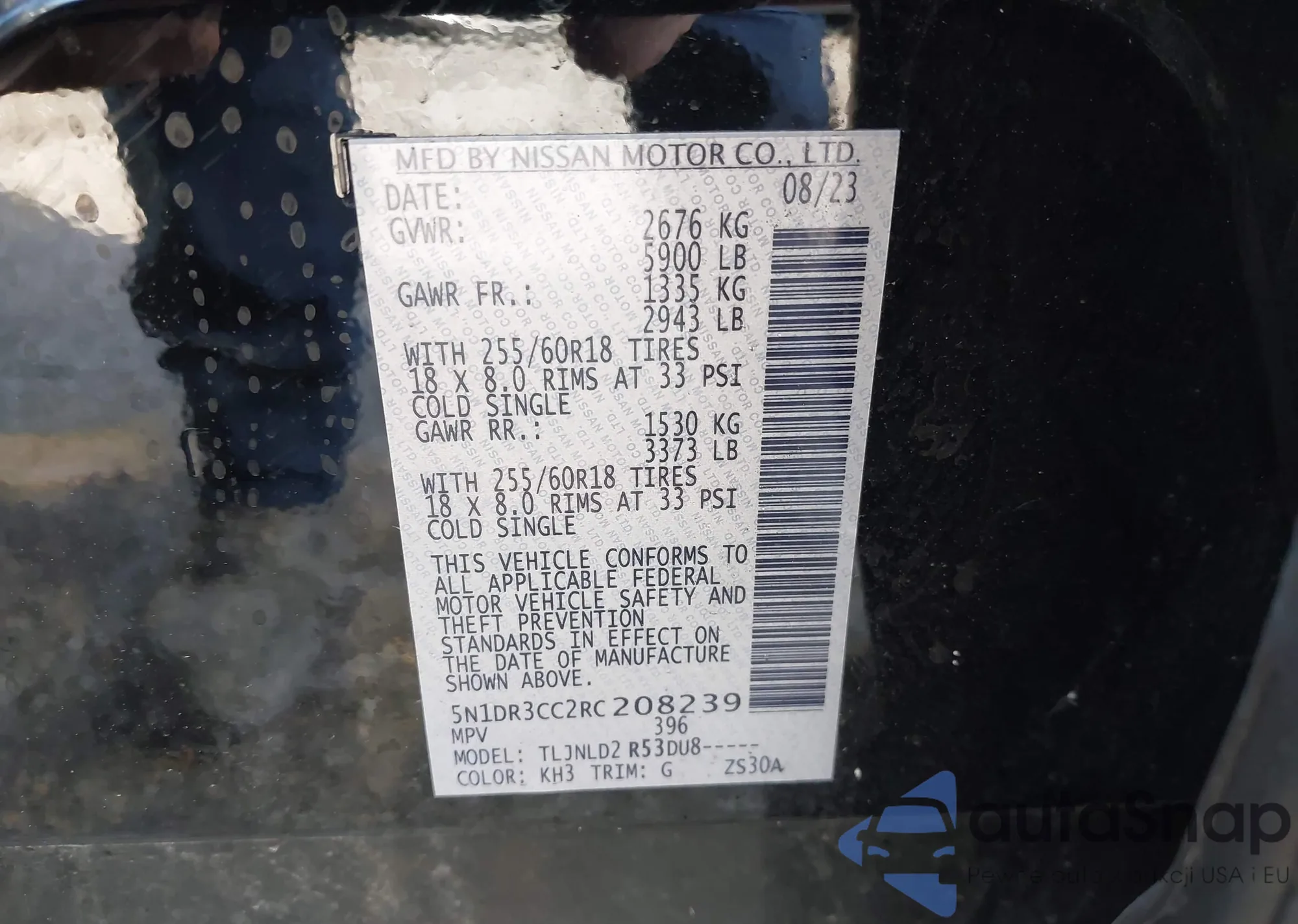 VIN: 5N1DR3CC2RC208239