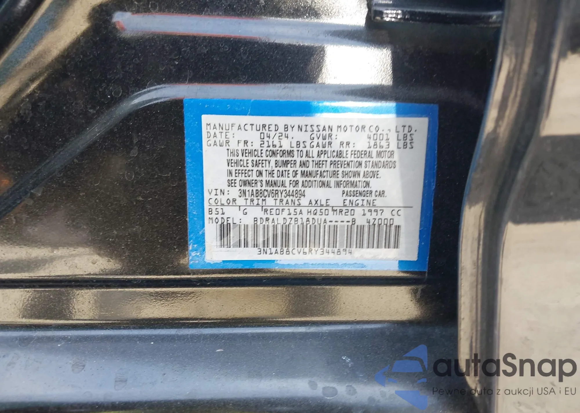 VIN: 3N1AB8CV6RY344894