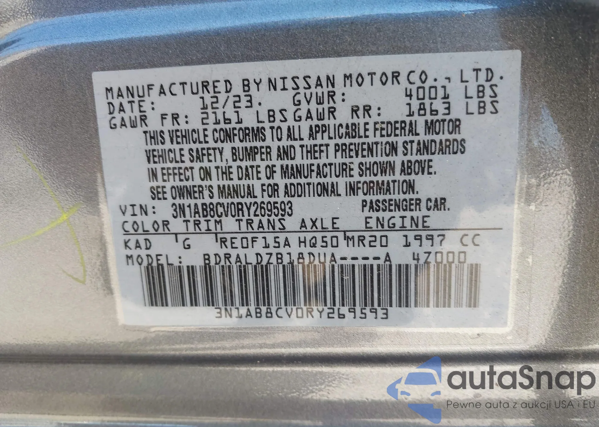 VIN: 3N1AB8CV0RY269593