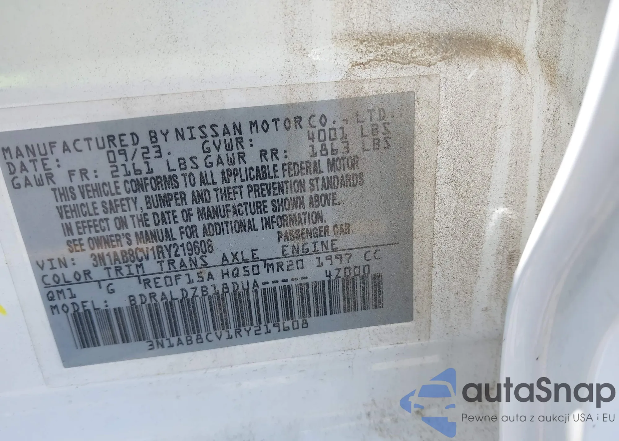 VIN: 3N1AB8CV1RY219608