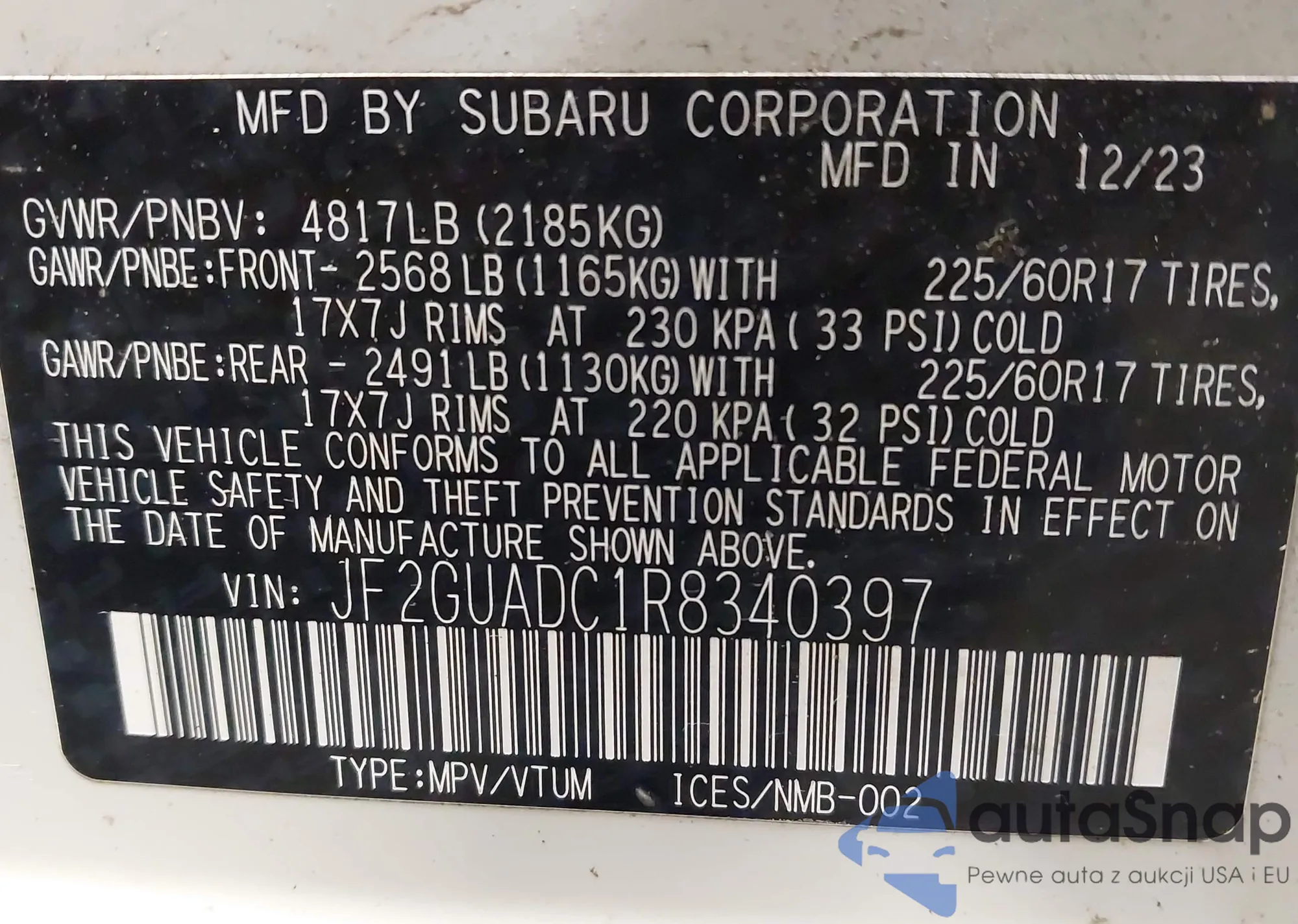 VIN: JF2GUADC1R8340397