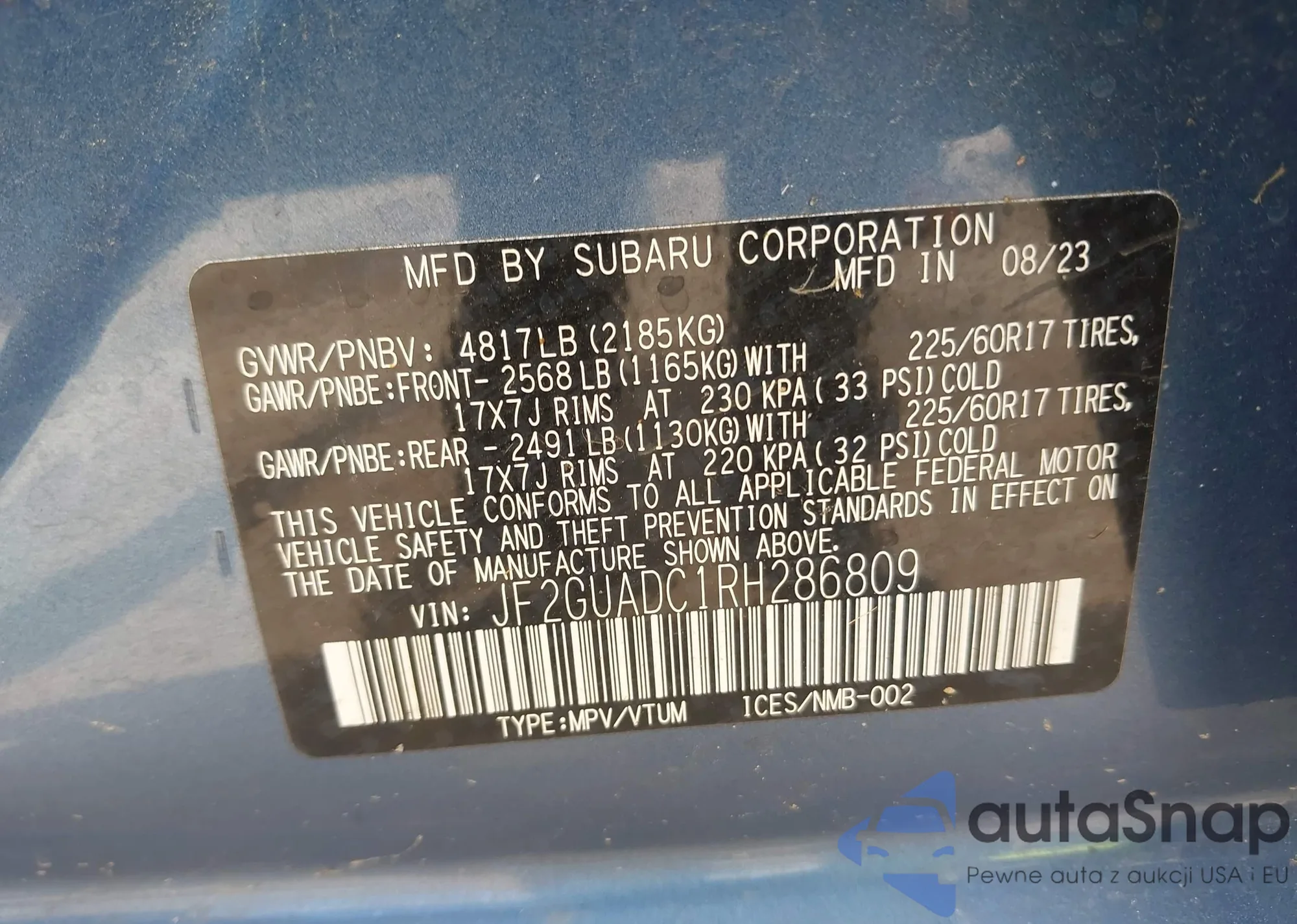 VIN: JF2GUADC1RH286809