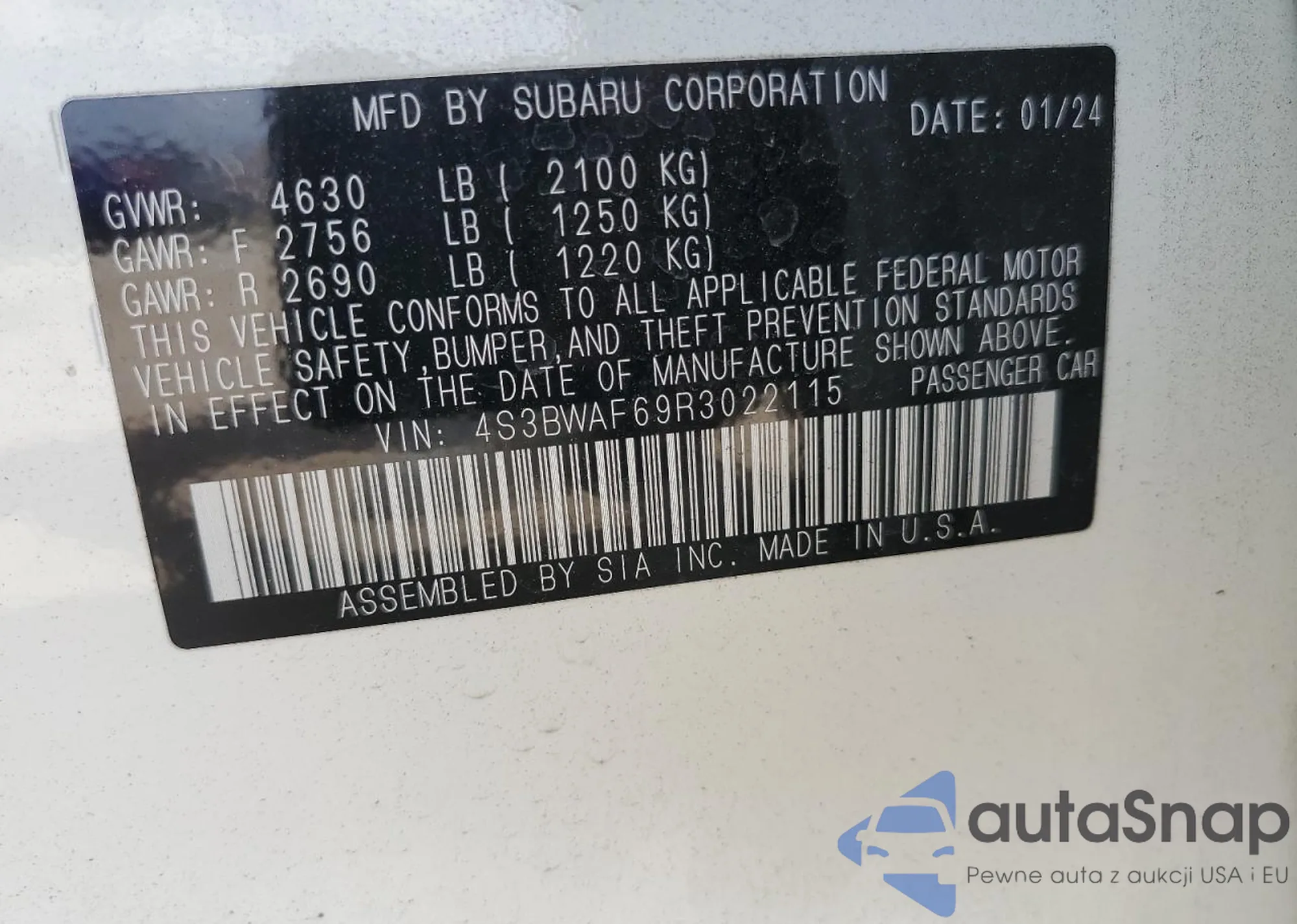 VIN: 4S3BWAF69R3022115