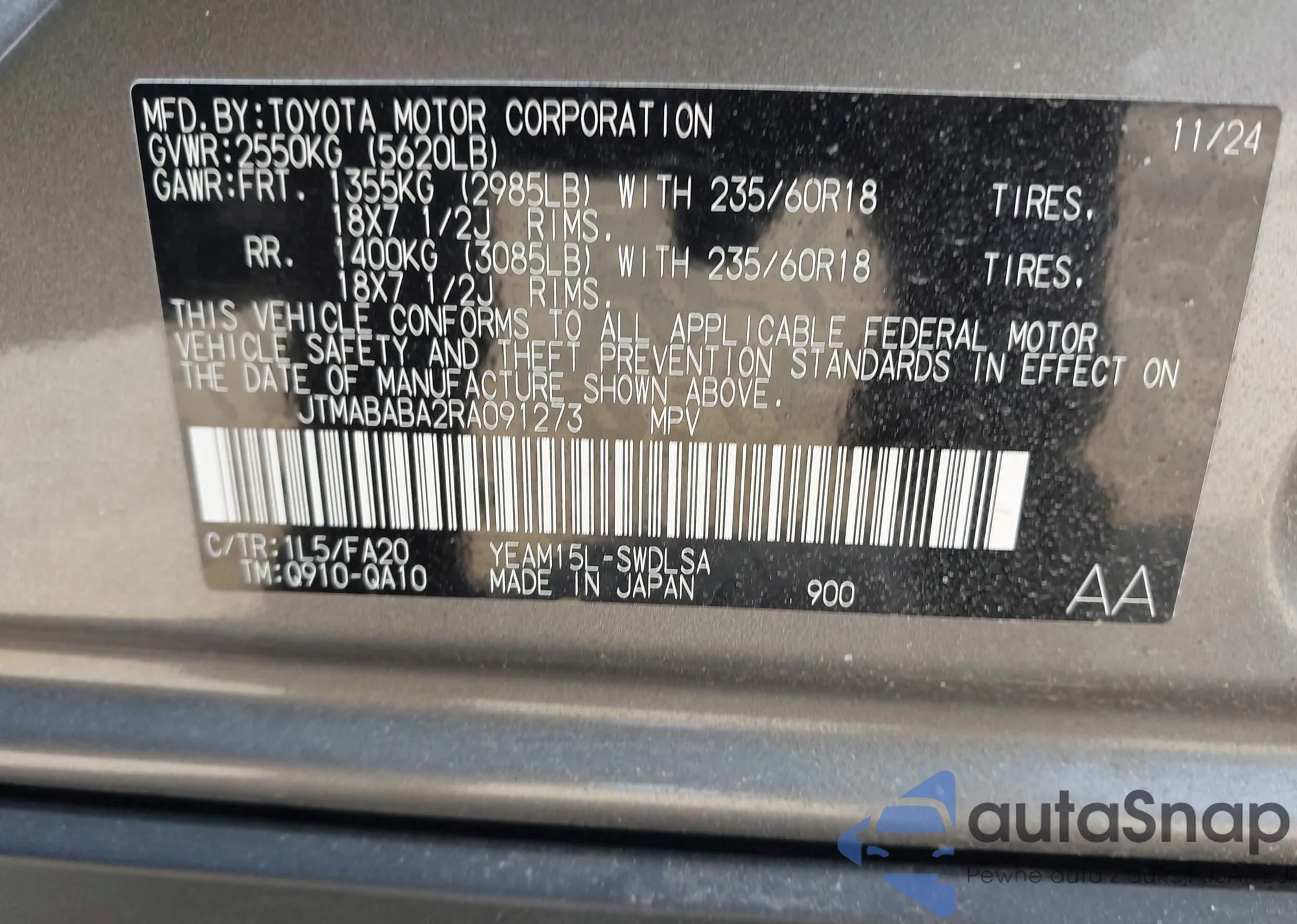 • VIN: JTMABABA2RA091273