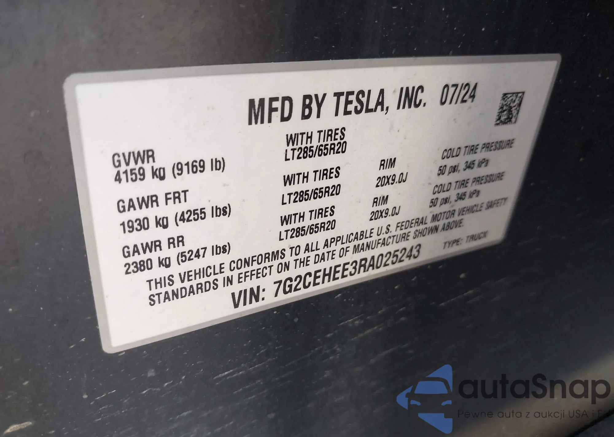 Samochód Tesla Cybertruck 2024 (VIN 7G2CEHEE3RA025243) nie był wcześniej licytowany. Dokumenty są czyste, przebieg odpowiada lub jest niższy niż średnia rynku. Sprzedaje go firma ubezpieczeniowa – polecamy zakup. Dostawa do portu zajmie ok. 6–8 tygodni.