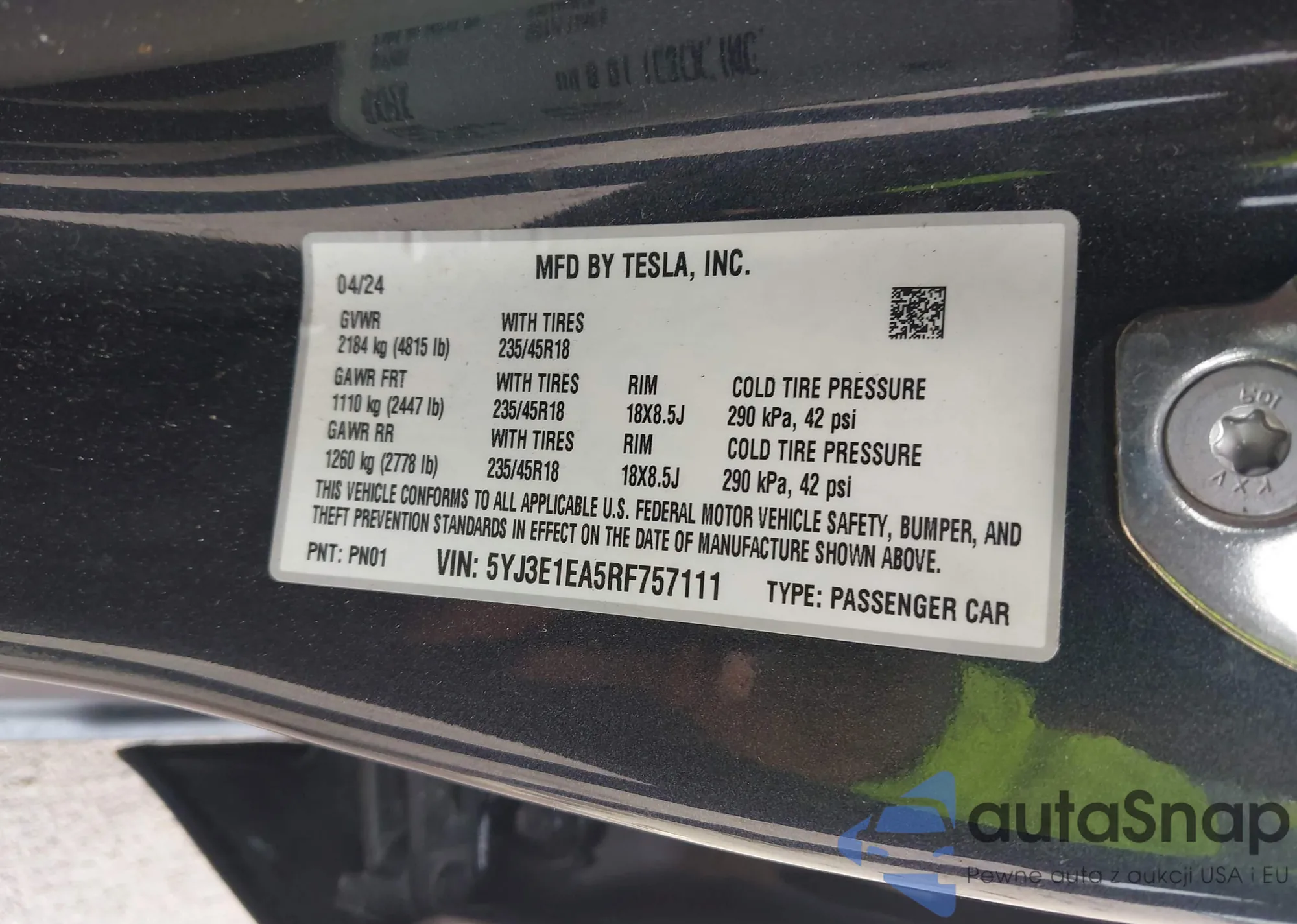 VIN: 5YJ3E1EA5RF757111