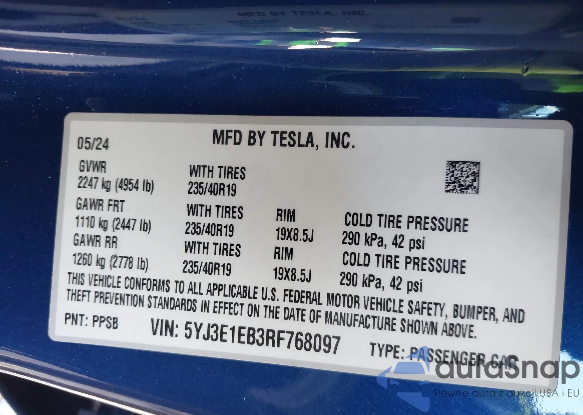 • VIN: 5YJ3E1EB3RF768097