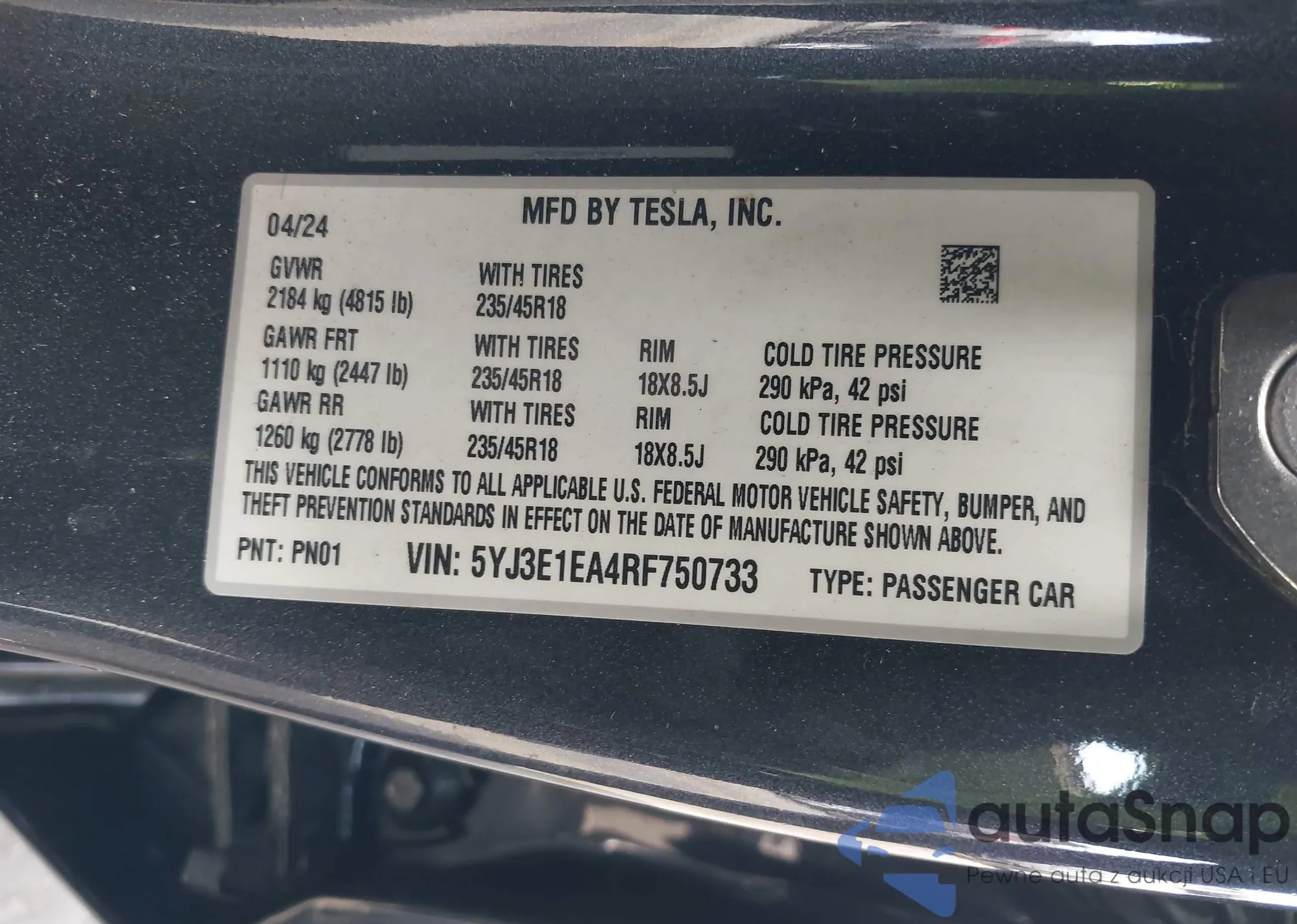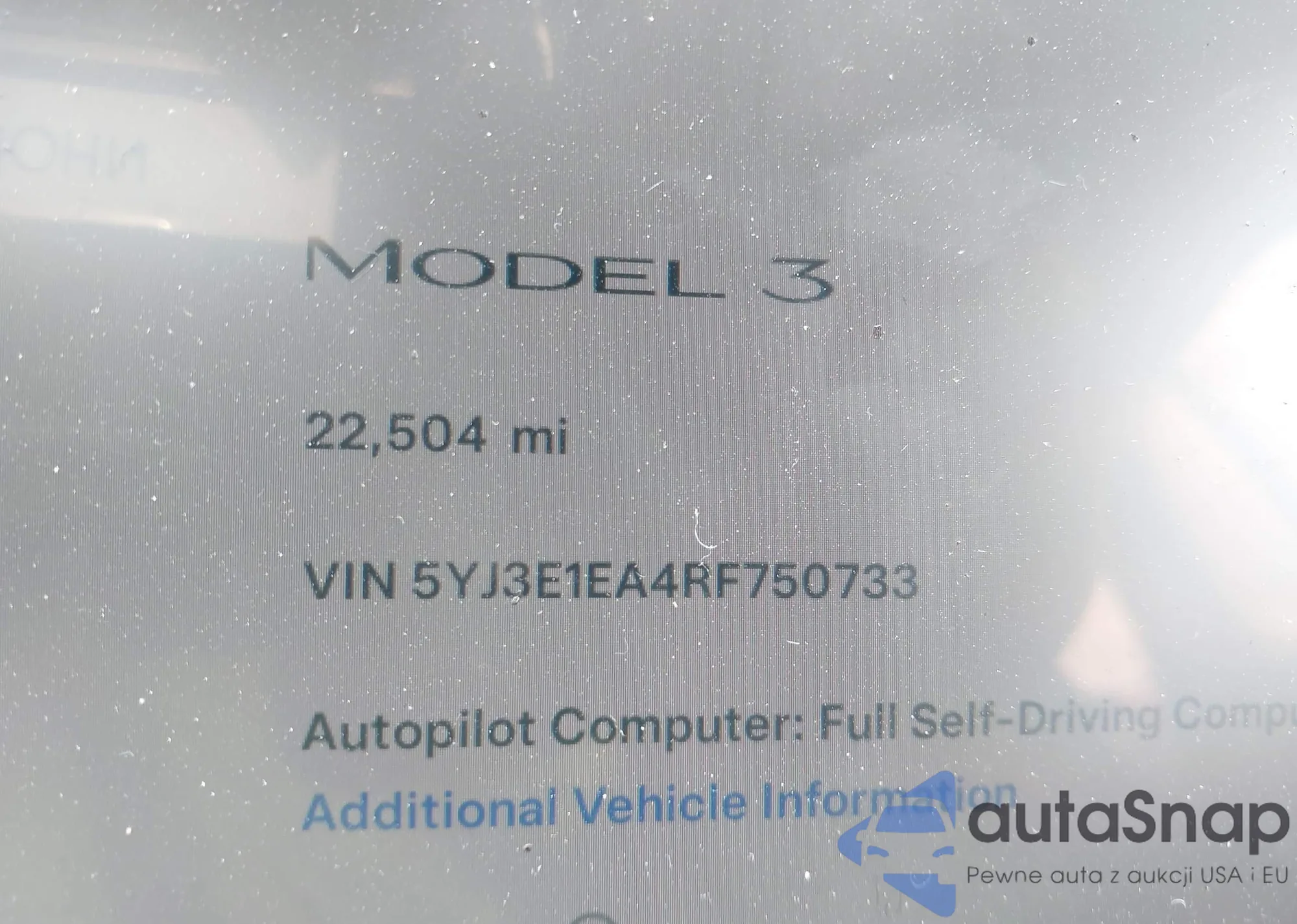 • VIN: 5YJ3E1EA4RF750733