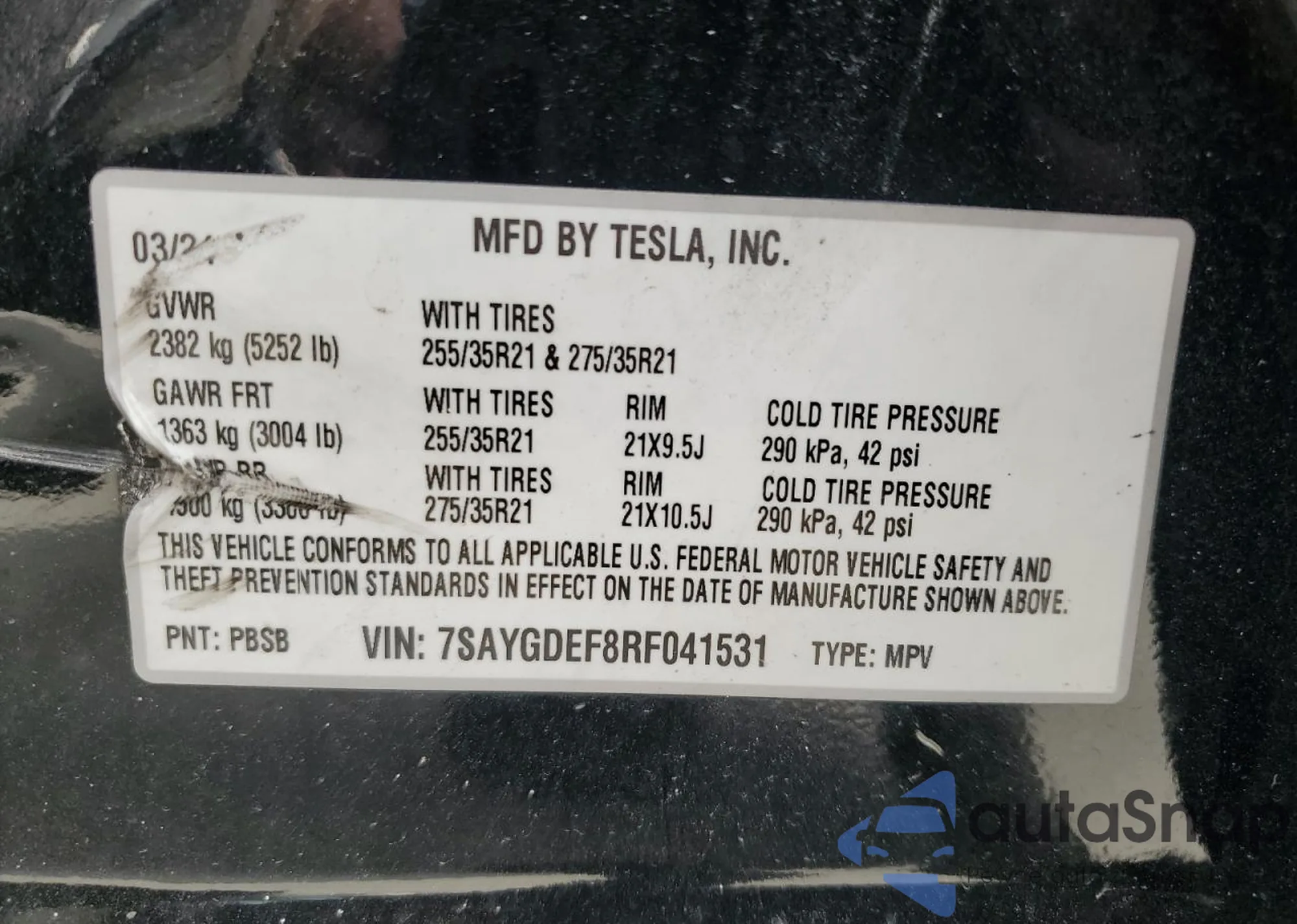 • VIN: 7SAYGDEF8RF041531