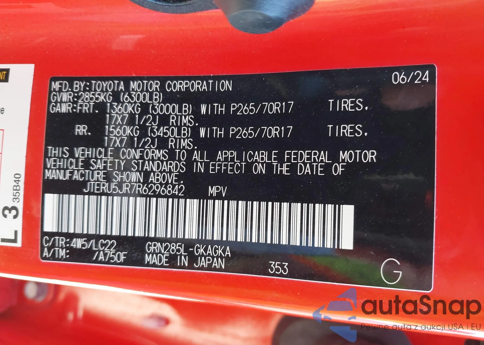 Samochód Toyota 4Runner 2024 (VIN JTERU5JR7R6296842) był już licytowany 1 razy i/lub sprzedaje go niezweryfikowany sprzedawca. Zalecamy raport Carfax i potwierdzenie możliwości rejestracji pojazdu przed zakupem.