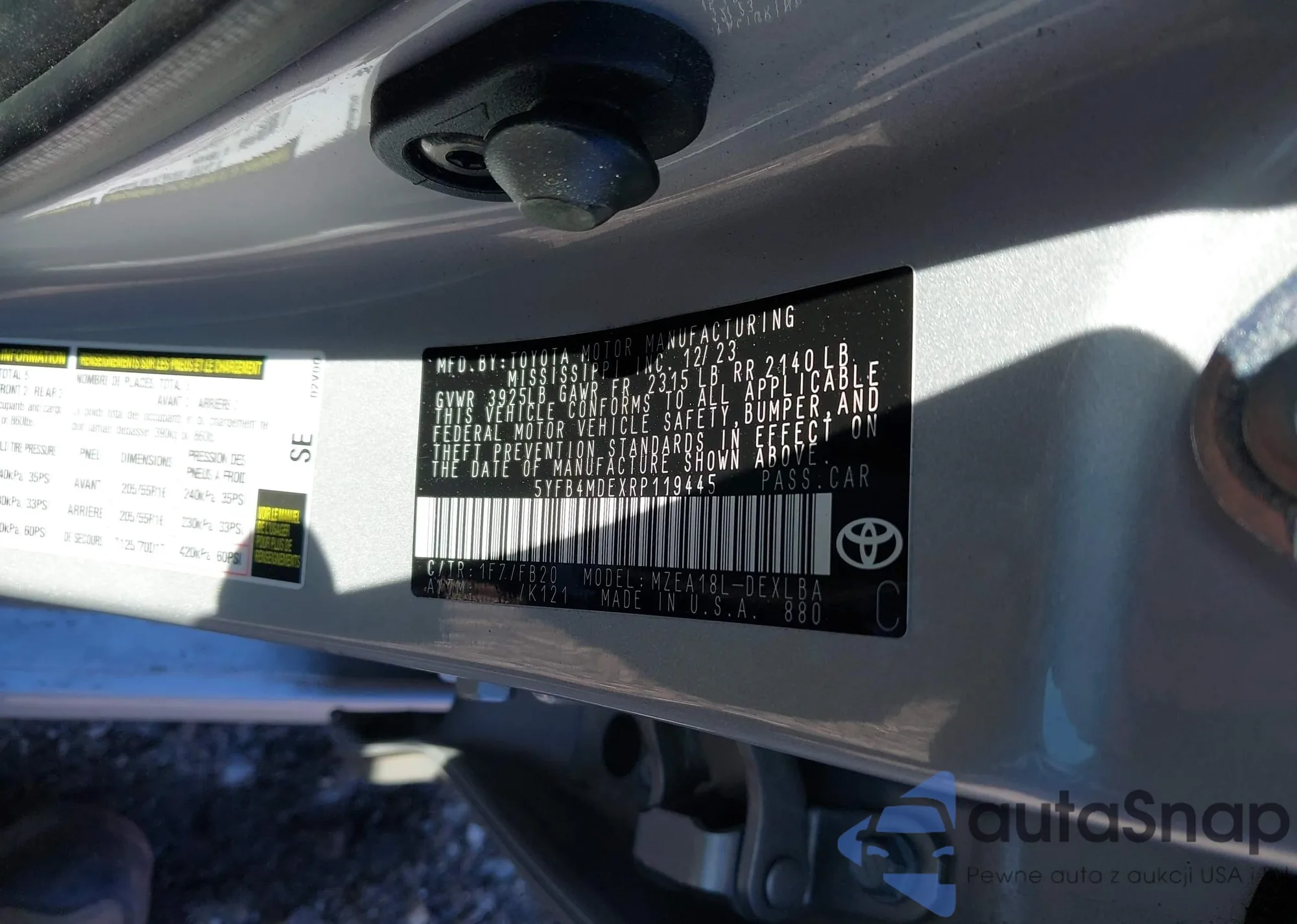 Toyota Corolla 2024 – Historia pojazdu (sprzedany na IAAI)
