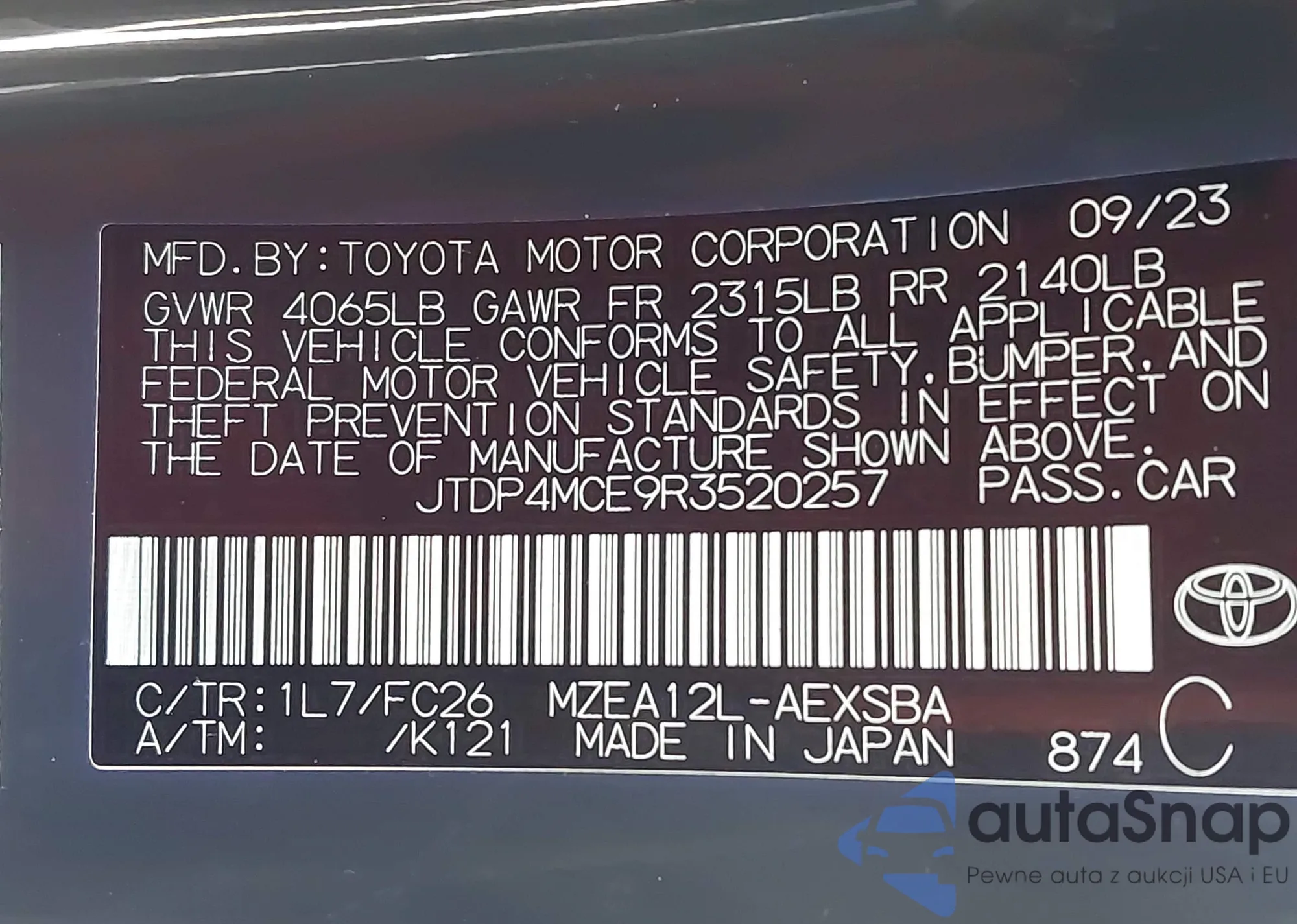 VIN: JTDP4MCE9R3520257