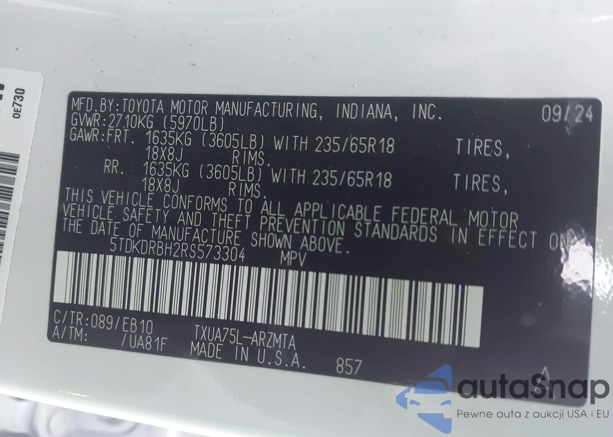 VIN: 5TDKDRBH2RS573304