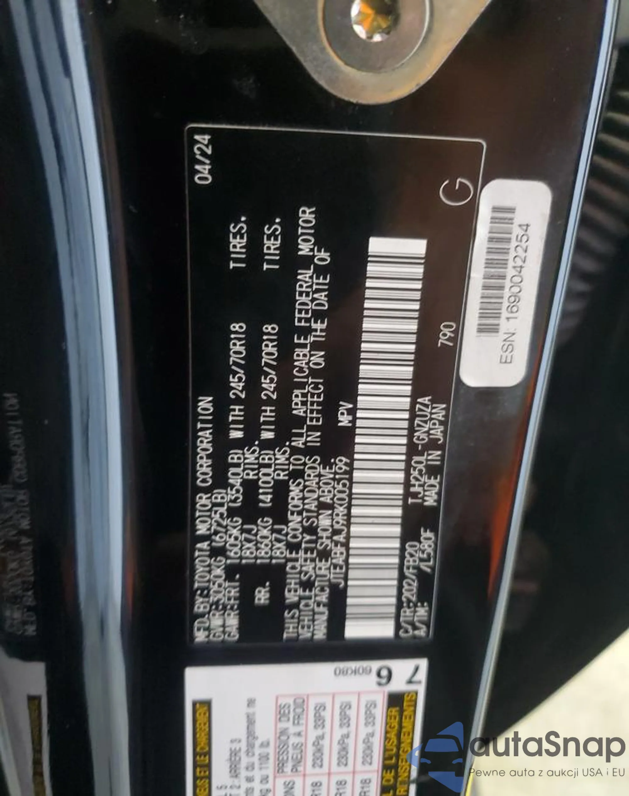 Samochód Toyota Land Cruiser 2024 (VIN JTEABFAJ9RK005199) był już licytowany 1 razy i/lub sprzedaje go niezweryfikowany sprzedawca. Zalecamy raport Carfax i potwierdzenie możliwości rejestracji pojazdu przed zakupem.