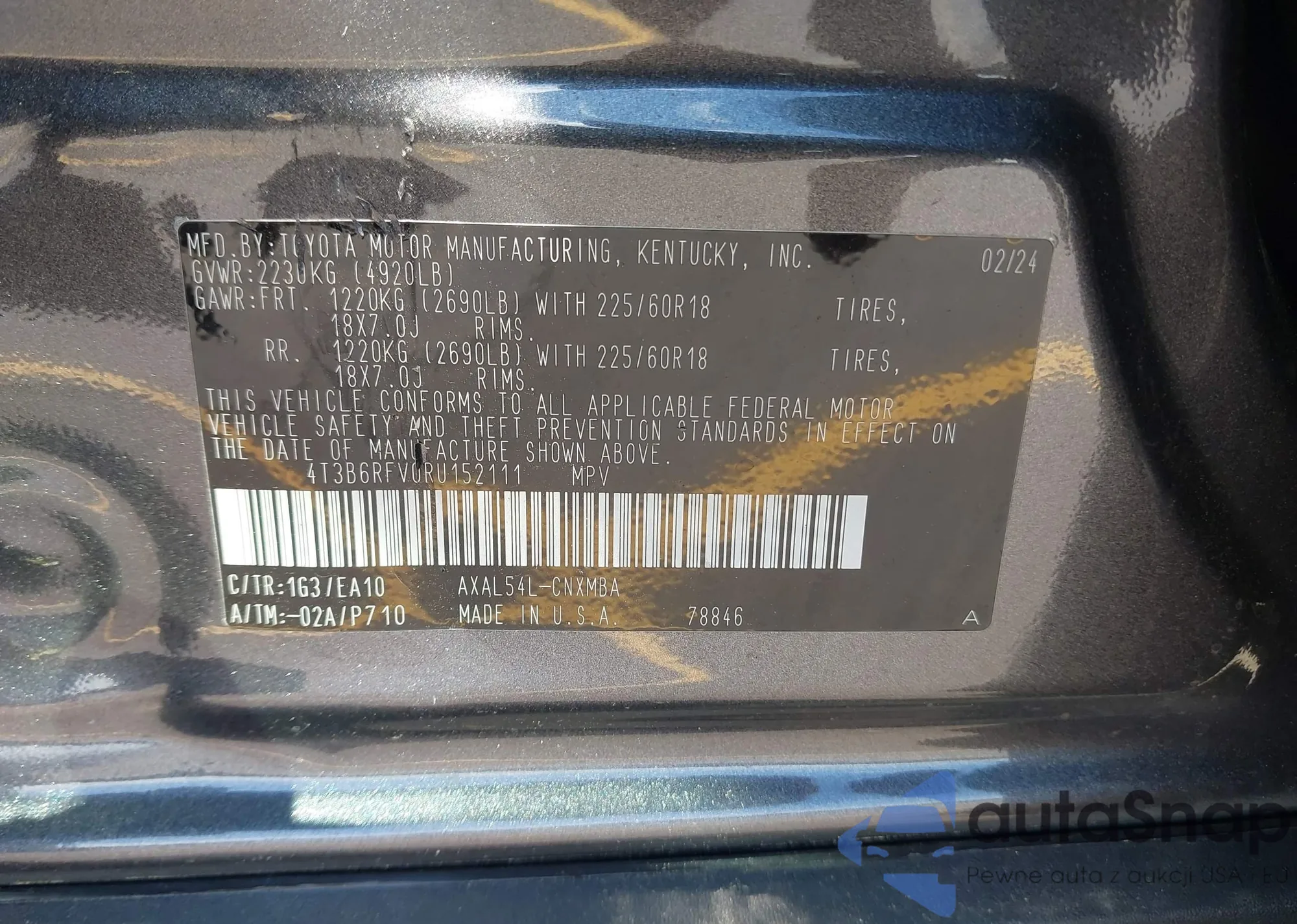 VIN: 4T3B6RFV0RU152111